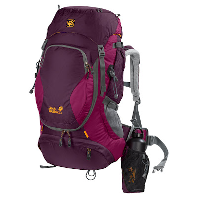 Pour Adèle : un modèle de randonnée 46 litres spécialement conçu pour les « women » pesant 1680 gr. Il dispose de 2 compartiments avec un accès depuis l’avant au rangement principal qui évite de démonter tout son sac quand on cherche quelque chose au fond. Il dispose d’une housse de pluie toujours pratique, surtout lors des transits dans les aéroports pour éviter de déchirer les bretelles dans les tapis roulant pour bagages. Et pour qu’il soit assorti avec le reste de son équipement, elle l’a pris en « blackberry », mélange de mauve et de fuchsia !