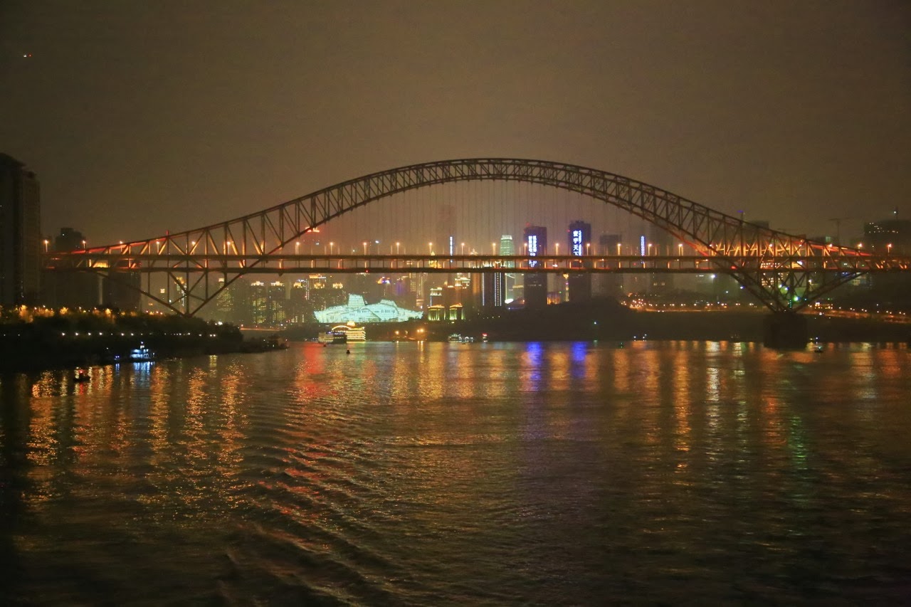 Le soir venu on se rend sur la place Chaotianmen au-dessus de laquelle évoluent de larges cerfs-volants d’environ 4 m sur 3 que leur pilote semble parfois avoir du mal à maîtriser ! Vers 17h, on a pu embarquer à bord du Victoria Selina (108 cabines) et découvrir une sympathique surprise : l’agence de voyage avait précisé lors de la réservation que nous étions en “honeymoon“ et ainsi on a été surclassé dans l’une des 6 Executive Suite que comptait le navire.
