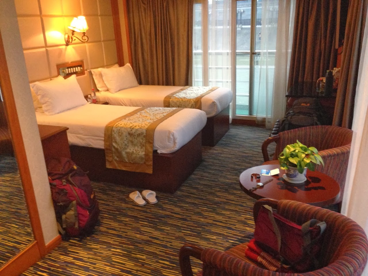 En regardant les prix directement sur internet cela nous semblait hors de prix et on s’est décidé à interroger l’agence CITS (voir post précédent) qui nous a trouvé de bien meilleurs tarifs et surtout une disponibilité aux dates désirées. On avait un timing serré et on voulait caser la croisière pile poil entre Xi’an et Nanjing remplaçant les 3 nuits prévues à Wuhan et Lushan.