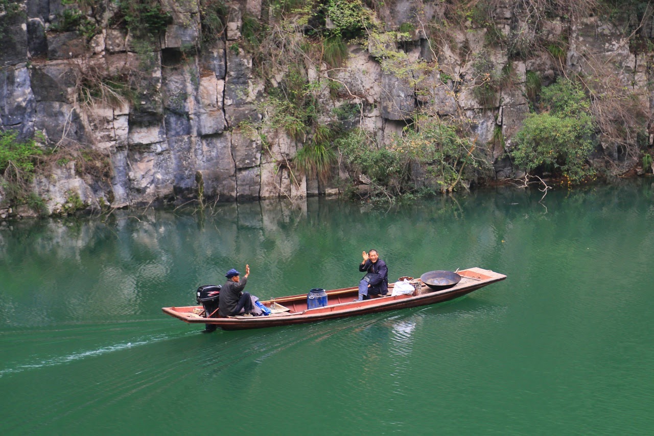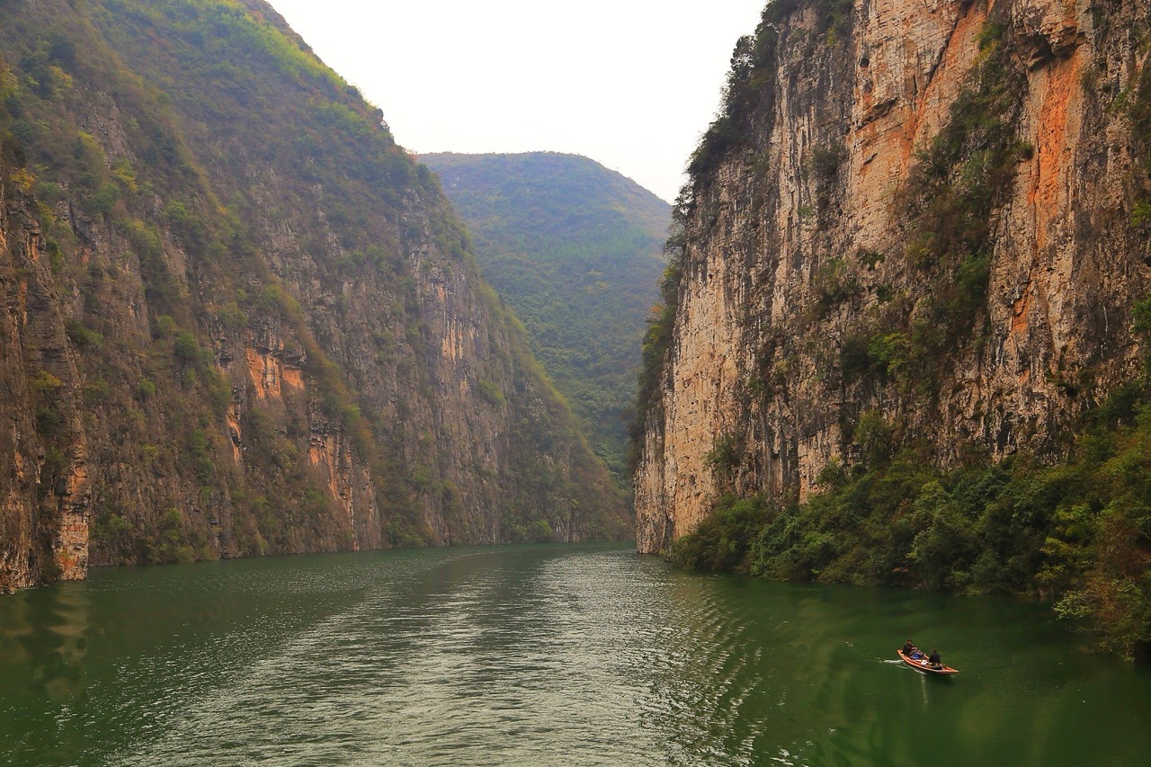 Après les gorges, le Victoria Selena s’arrête à Badong pour nous débarquer afin d’emprunter de plus petits bateaux et nous engouffrer dans de petites gorges très pittoresques sur la rivière Shennong. Cet affluent est un modèle réduit des gorges du Yangzi mais l’étroitesse du sinueux “ruisseau“ et la proximité des falaises rendent la promenade assez impressionnante surtout lorsque quelques grottes, formations rocheuses et autres ponts de la future autoroute Shanghai-Chengdu viennent rompre la “presque“ monotonie des collines luxuriantes.