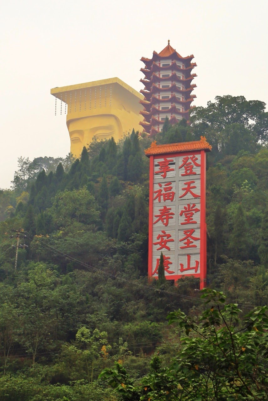 Le lendemain la première escale fut Fengdu, la cité des Fantômes, surnommée ainsi car elle a été totalement submergée et déplacée sur l’autre rive. On descendit du bateau pour faire grimpette au sommet d’une colline où nous attend un lieu de culte taoïste datant de la dynastie Tang. On y trouve un ensemble de temples dédiés aux démons, hantés par les esprits des victimes de mort violente. Joyeux…