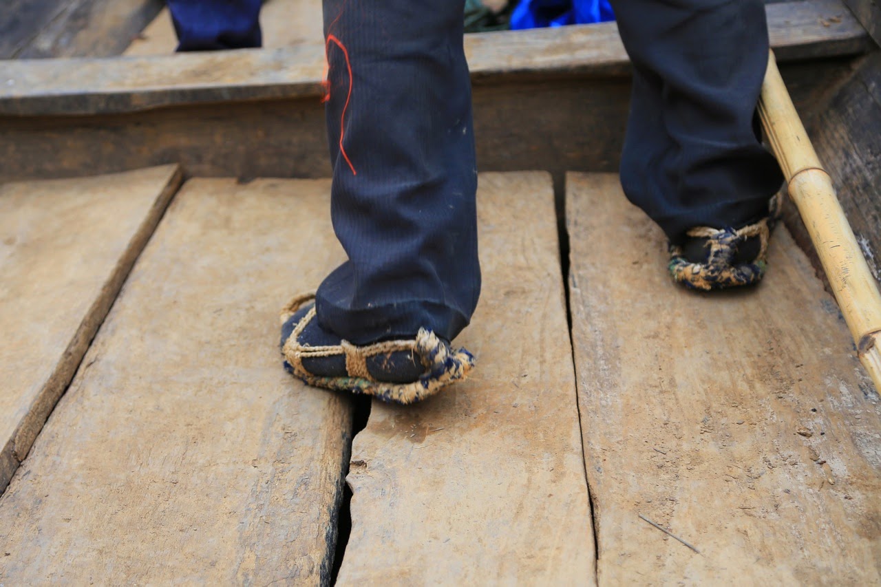 Au bout du parcours nous attendent des pirogues propulsées par 4 gaillards enjoués afin de nous faire atteindre le fond de la gorge. On a eu le droit à une démonstration des “boat trackers“, des hommes qui jadis faisaient passer les bateaux en les tirant du bord de la berge au moyen d’une longue corde et ce dans le plus simple appareil ! Lors de la présentation du matin sur le bateau, le diaporama nous montrait des jeunes hommes nus, costauds et musclés des bras aux cuisses en passant par les fesses dont les images ont généré une clameur chaleureuse des spectatrices. En réalité nos “trackers“ n’étaient plus très jeunes, vêtus de bas de survêtements informes avec des gilets en laine trop larges et portant des tongs de tissus tenant aux pieds avec de la corde !! Les femmes ont protesté énergiquement et ont demandé à être remboursées de l’excursion…