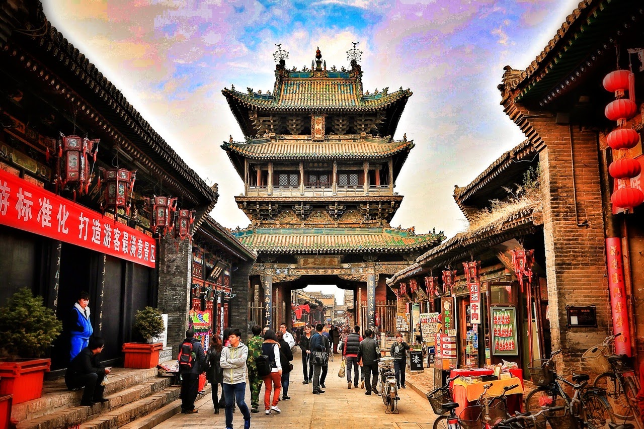 La nuit se passe bien et à part le manque de savoir-vivre des Chinois qui pique un peu au réveil, on finit par arriver vers 6h en gare de Pingyao. Pour nous réveiller, on entame une “petite“ marche pour rejoindre notre hôtel et bien que la nuit était encore bien noire au début, le jour commença à se lever au bout des 1,4 km nous séparant de notre auberge de jeunesse. Et après nous être trompés une première fois d’établissement, on trouve finalement la bonne adresse au fond d’une impasse et en passant sous un ancien portique en bois décoré, on pénètre dans une magnifique guesthouse avec cour au style ancien et les classiques lanternes rouges accrochées au toit. On y découvre notre chambre tout aussi joliment décorée avec un lit gigantesque (Qang size) où l’on pourrait faire dormir 4 personnes…