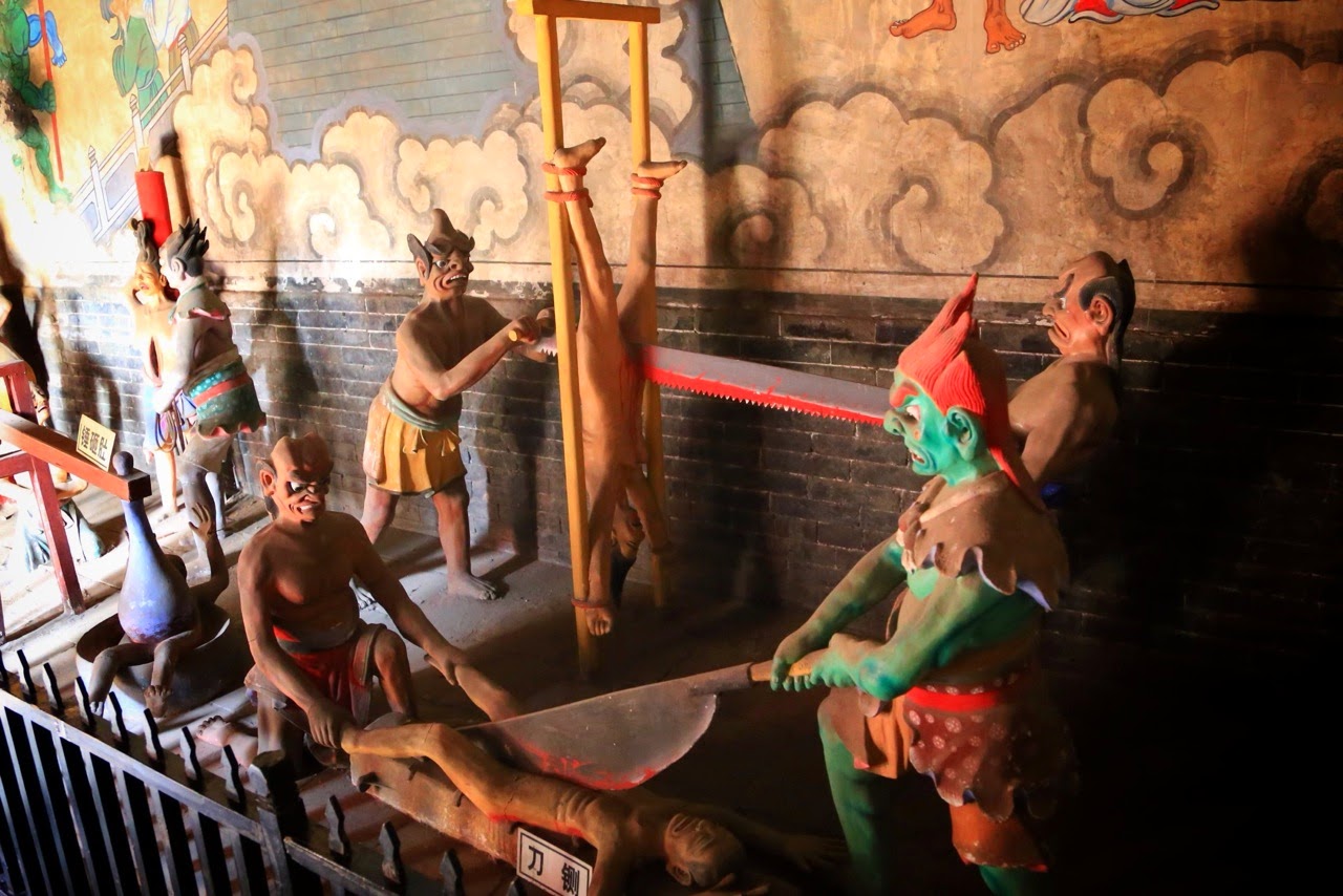 Le lendemain, après une grasse matinée à profiter de notre lit pouvant accueillir 3 bouddhas, on a tout de même décider de rentabiliser le pass acheté la veille et on s’est mis en route pour faire quelques visites. On a commencé par celles conseillées par le Lonely (le musée Rishengchang, la Tour de la ville, le Temple confucéen, le Mur des 9 dragons, le Temple Qingxu Guan et l’église catholique) et on a ensuite continué par celles qu’on rencontrait sur notre parcours. En une après-midi, il est clair qu’on est loin d’avoir fait les 15 mais au bout d’un moment, tu n’en peux plus et c’est assez répétitif. Surtout que les explications disponibles en anglais sont assez sporadiques et dont la traduction laisse parfois à désirer.