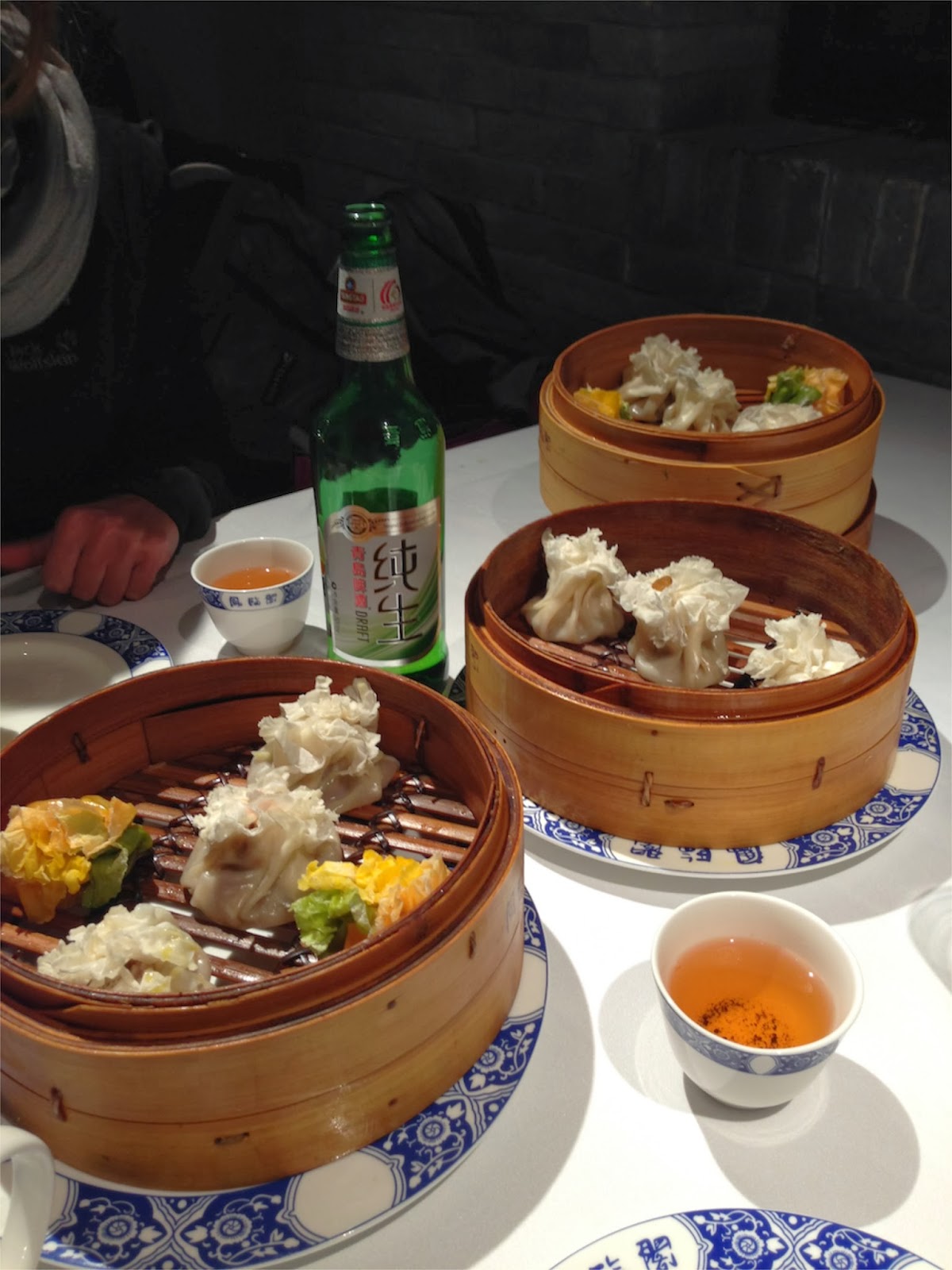 De retour à Datong pour le début de soirée, on est allé dîner dans un restaurant qu’on a découvert la veille et dans lequel on a bien failli ne jamais rentrer ! En essayant de trouver une carte à l’extérieur, on a été tout d’un coup impressionné par les gros 4×4 garés devant, le service de voiturier et les hôtesses en habits traditionnels accueillant chaque client. A observer ce manège, on a immédiatement pensé que l’adresse n’était peut-être pas en adéquation avec notre budget de globe-trotters ! De plus, pas un mot sur ce resto, ni dans le Lonely, ni dans Trip Advisor et l’endroit ne semble uniquement fréquenté par des locaux. Mais on a tellement galéré le jour d’avant pour trouver un resto et l’endroit semblait vraiment sympa : « au pire, on prend juste des damplings et une bière et on se casse » me dit Adèle. Datong est connue pour sa spécialité, le shaomai, un ravioli en forme de bourse, cuit à la vapeur et trempé dans du vinaigre du Shanxi et on n’allait quand même pas quitter la ville sans goûter à ça !!