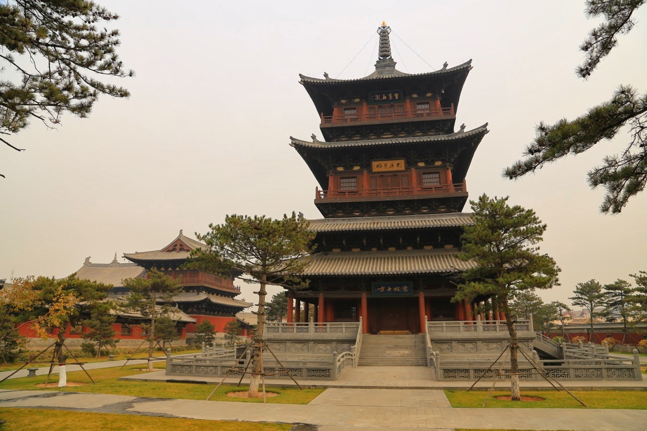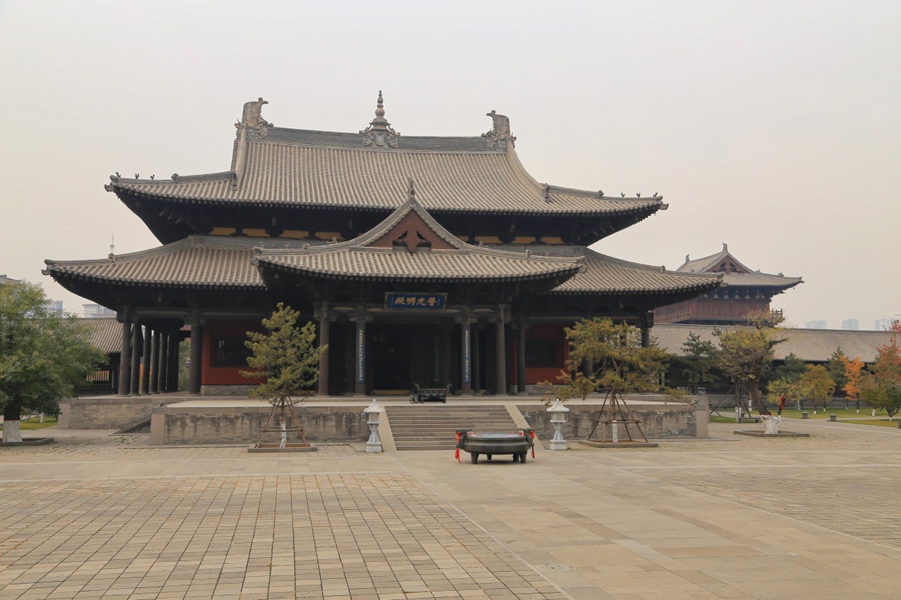 Sur les conseils du Lonely, on a occupé la journée en visitant le temple Huayan dont l’une des salles est le plus vieil édifice de Datong (1038). Dans une ville où l’on rase tout le vieux afin de reconstruire du neuf pour les touristes, ça a le mérite d’être visité ! En plus à cette heure où les chinois déjeunent, y a un pas un katz dans l’enceinte du temple et on a pu faire des photos tranquille. Avant d’y rentrer on a reconnu le mur interminable qu’on a longé dans l’obscurité la plus totale, le soir de notre arrivée à l’hôtel. De jour on comprend mieux pourquoi il était si long : il constitue le rempart qui protège le temple et ses vastes jardins.