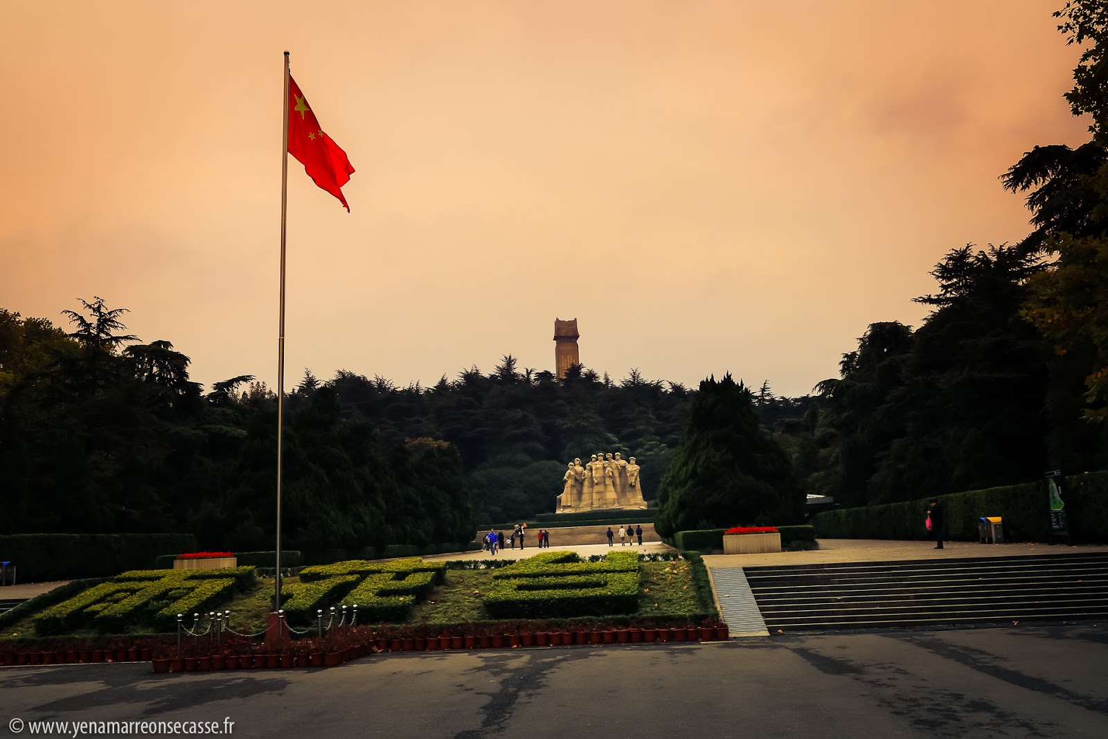 Le matin du premier jour après avoir checker sur la carte fournie par l’auberge de jeunesse, on a trouvé le « Yuhuatai Martyrs Memorial » situé dans le beau et grand parc du même nom à 20 min de marche. Comme on a vu “martyr“, on ne s’est pas posé plus de question et on s’est mis en route. Une fois sur place, on a vu des statues, on a monté un grand escalier avec un mémorial au sommet avec sa flamme éternelle et une gerbe de fleurs, on a visité une expo consacrée à Mao et on a fini par le musée des Martyrs. Vers la fin du musée (très bien fait d’ailleurs mais manquant d’explication en anglais) et au bout d’1h30 passée dans ce parc, on n’avait toujours pas vu de rapports avec les Japonais et on cherchait encore les photos et les documentaires insoutenables du massacre que rapportaient le Lonely !