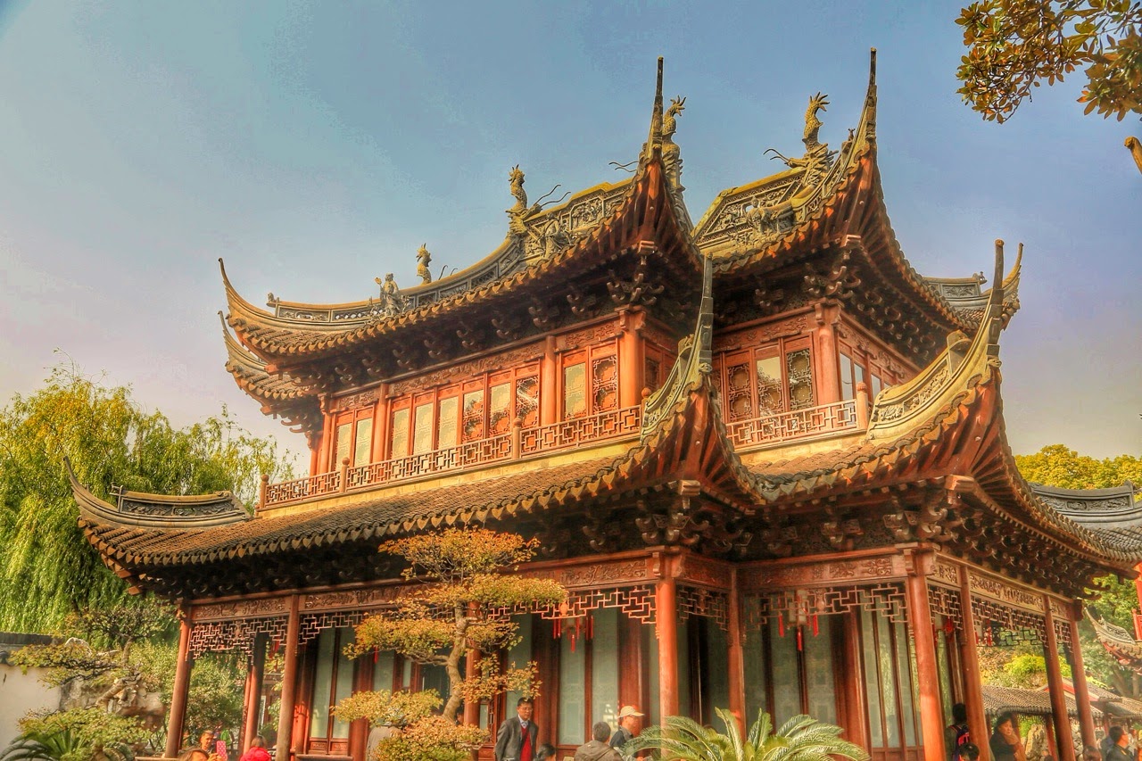 Enfin pour notre dernier jour à Shanghai, nous nous sommes rendus au bucolique Jardin Yuyuan, vaste coin de nature perdu dans la vieille ville. L’endroit est apaisant et on s’y ballade au milieu des pins, des rocailles, des pavillons et des étangs riches de carpes multicolores “surnourries“ par les visiteurs. On y a retrouvé l’esprit du Palais d’été de Beijing mais évidemment en beaucoup plus réduit.