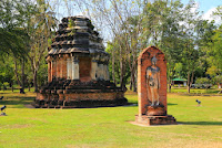 Le Wat Khao Suwan Khiri se situe sur la colline qui surplombe le parc et impressionne par son large chedi posé sur une base carrée de 3 étages qu’on peut monter grâce aux marches près du wí·hăhn dont il ne reste presque rien.