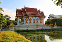Attirés par la foule qui grouillaient dans les petits marchés autour des temples plus récents, on s’est encore arrêté à trois Wat dont le Wat Ratchathani (les 2 dernières photos ci-dessous) au centre de New Sukhothai.