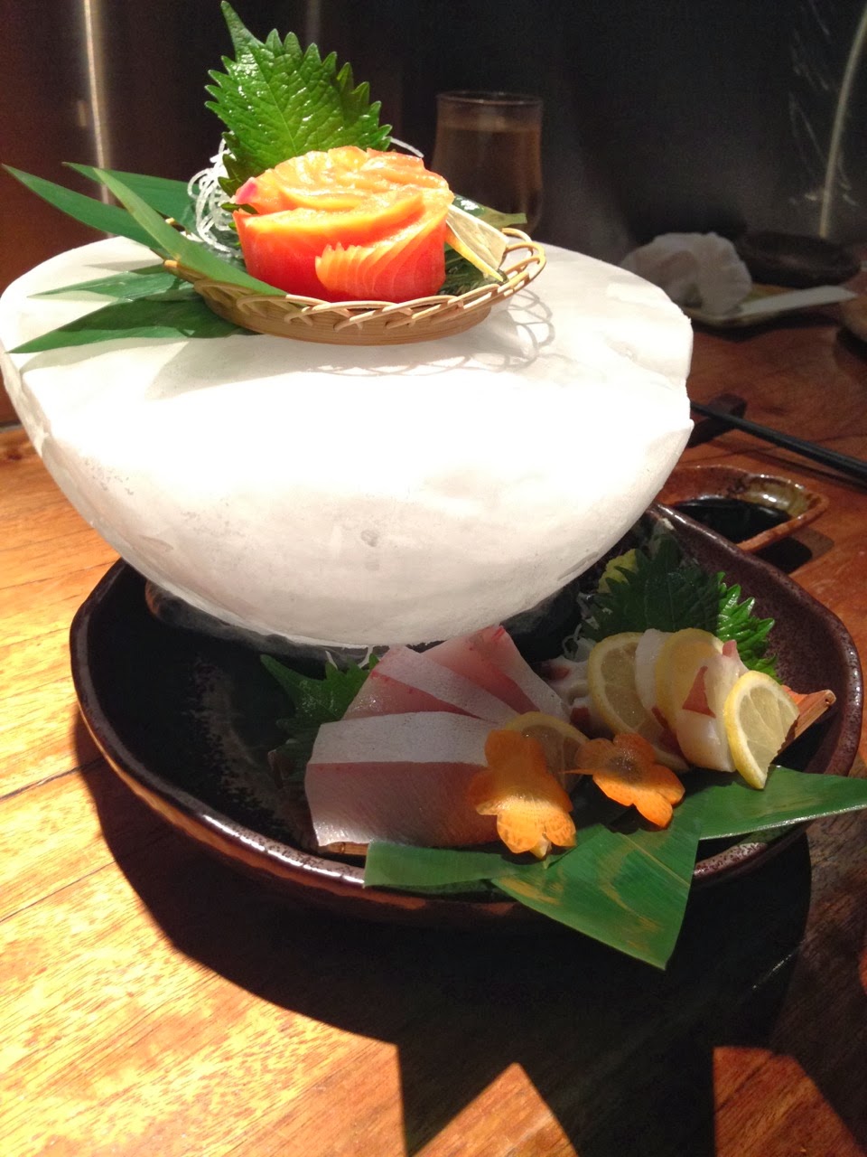 Le soir, dans le quartier Sakae on a croisé de nombreux petits groupes de business man visiblement “très joyeux“ qui fêtaient la fin de leur difficile semaine de travail en se détendant dans les bars… Pour notre part, on a atterri dans un resto au premier étage d’un petit immeuble où pour la première fois la carte n’était pas disponible en anglais et où personne ne parlait l’anglais non plus !! Avec un peu de patience et la bonne volonté du serveur, on a quand même réussi à commander quelque chose et à manger un assortiment de sushis et de sashimis dont la présentation est assez travaillée.