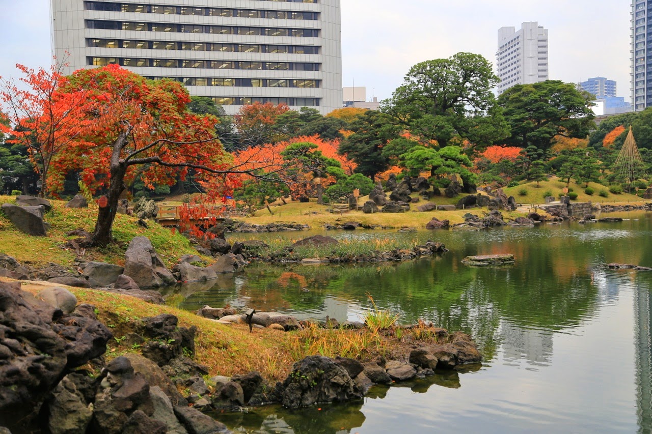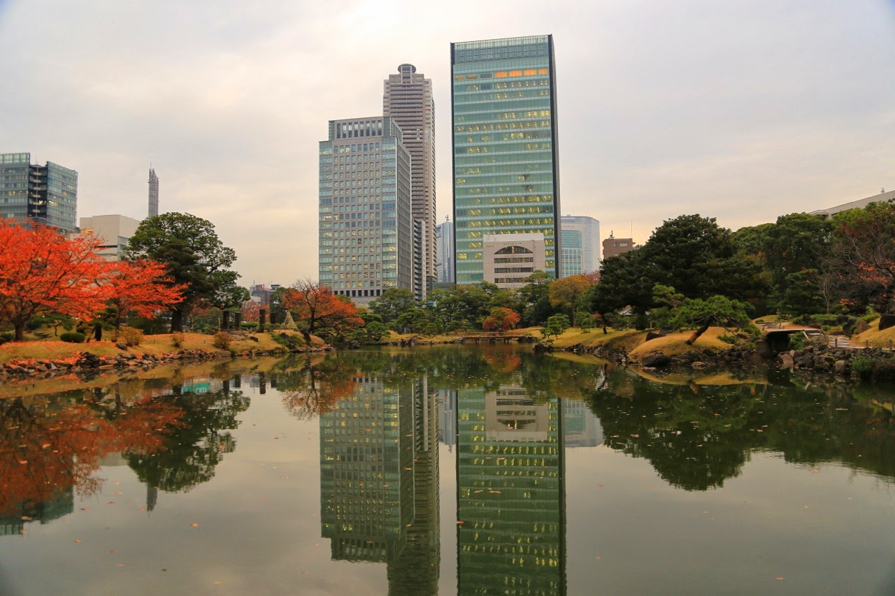 Déçus, nous avons fait une halte au parc Kyu Shiba Rikyu où nous étions pratiquement seuls à arpenter les chemins sinueux de ce sublime jardin japonais perdu au milieu des buildings du quartier d’affaires environnant. Encore un lieu qui se prêtait une fois de plus à faire un milliard de photos !! Adèle a bien failli me laisser là-bas…