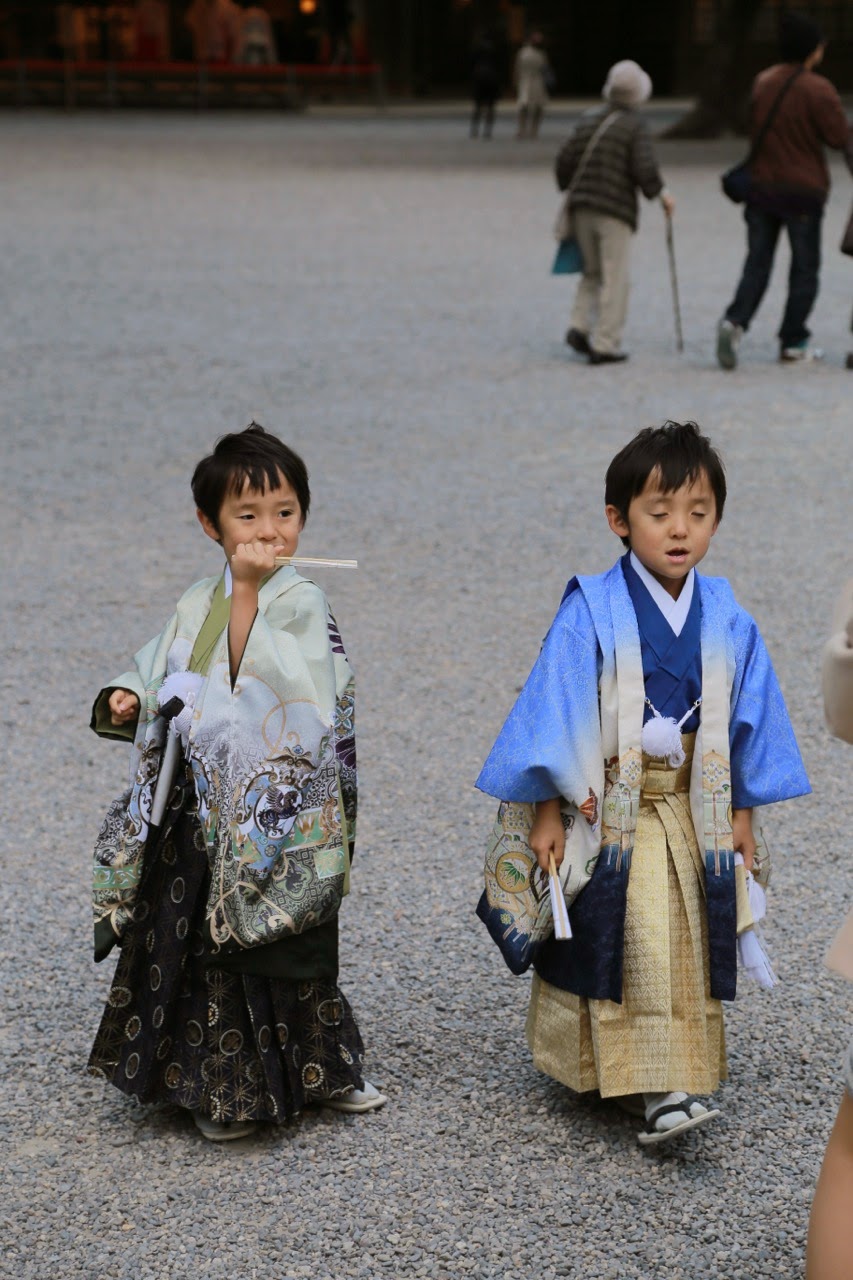 Par ailleurs à partir du 15/11, les Japonais fêtent Shichi-go-san qui consiste à amener les enfants vêtus de leurs habits traditionnels au temple et au sanctuaire pour attirer la chance. Ainsi on a pu voir un vrai un défilé de bambins en tong et chaussette aussi mignons les uns que les autres…