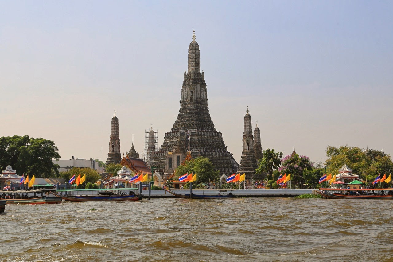 Le soleil se couche et on n’aura plus le temps d’aller jusqu’à Wat Arun qu’on a aperçu du bateau le matin. Programmé initialement pour conclure notre marche, le temple ferme ses portes à 17h et ça tombe finalement bien car tout le monde en a plein les pattes. Nos vacanciers ont eu leur dose de temples pour la journée… et nous aussi, au bout de 4 semaines de visites dans le pays ! Les watde Bangkok achèvent parfaitement notre parcours en Thaïlande car ils restent les plus beaux et les plus travaillés mais pas forcément les plus anciens ou les plus authentiques. On a eu la chance de voir les principaux temples et les plus vénérés dont certains font l’objet de pèlerinage de pratiquants bouddhistes venus de toute l’Asie.