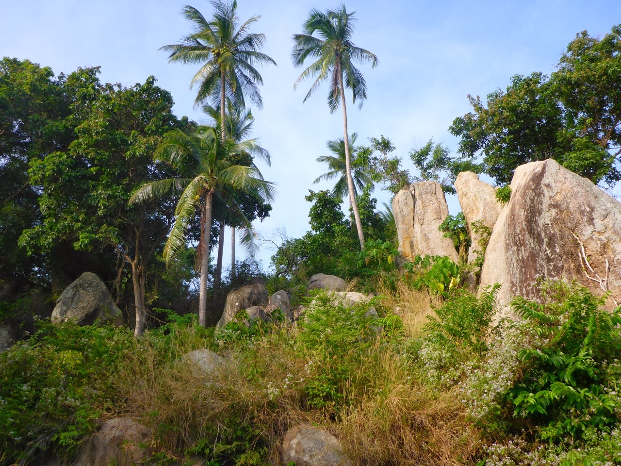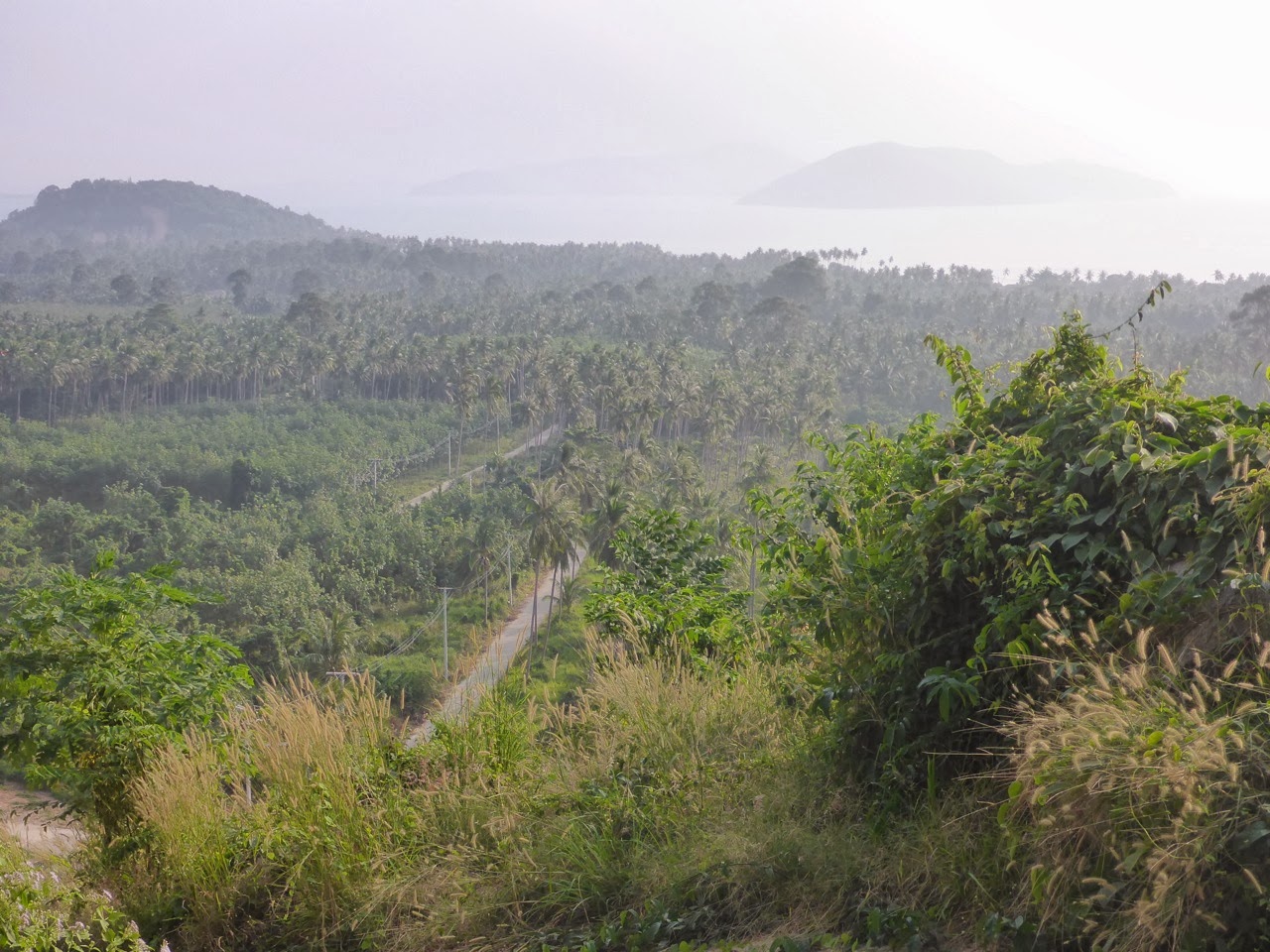 Pour le dernier jour à Koh Samui, on profita une dernière fois du sable de Silver Beach avant de reprendre les scooters et faire un petit tour chacun de son côté. Virginie et Gilles en ont profité pour faire un peu de shopping quant à Adèle et moi, nous reprenions la direction du Sud pour nous balader dans la campagne en quittant dès que possible la route principale pour encore découvrir de nouveaux paysages. Ainsi, on a pu tomber sur le quartier musulman de Ban Lamai et plus loin sur un charmant village de pêcheurs. En montant dans les hauteurs, notre 125 avait toutes les peines du monde à gravir la pente, si raide que j’ai bien cru ne jamais arriver au sommet. On a pu apprécier un magnifique panorama qui donnait sur une forêt de palmiers, sur la côte ainsi que sur les îles au large.