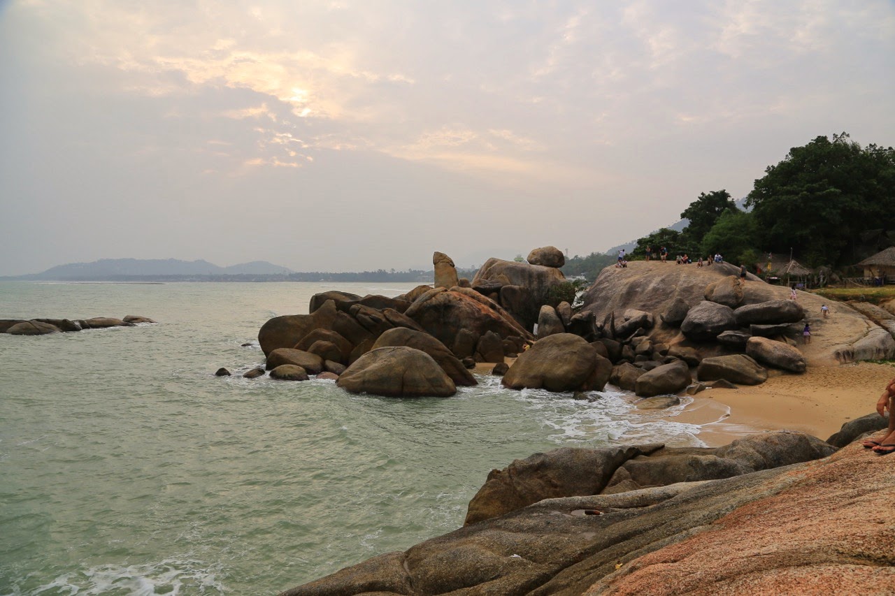 On continuera notre “chevauchée fantastique“ jusqu’à la pointe de Laem Hin Khomoù notre route s’arrêta devant une plage… et un bar ! Comme c’était l’heure de l’apéro, on a déquillé quelques bières tout en faisant la connaissance du tôlier, un belge installé ici depuis 7 ans et qui ne reviendrait pour rien au monde dans son pays natal ! Il nous donnera quelques infos sur les spots qui bougent à Chaweng mais aussi sur une petite crique déserte un peu plus loin où l’on pourrait faire trempette. Le temps de faire un repérage de ladite crique, on décide d’y pique-niquer pour le déjeuner après quelques courses au Family Martsitué un peu plus tôt sur la route.