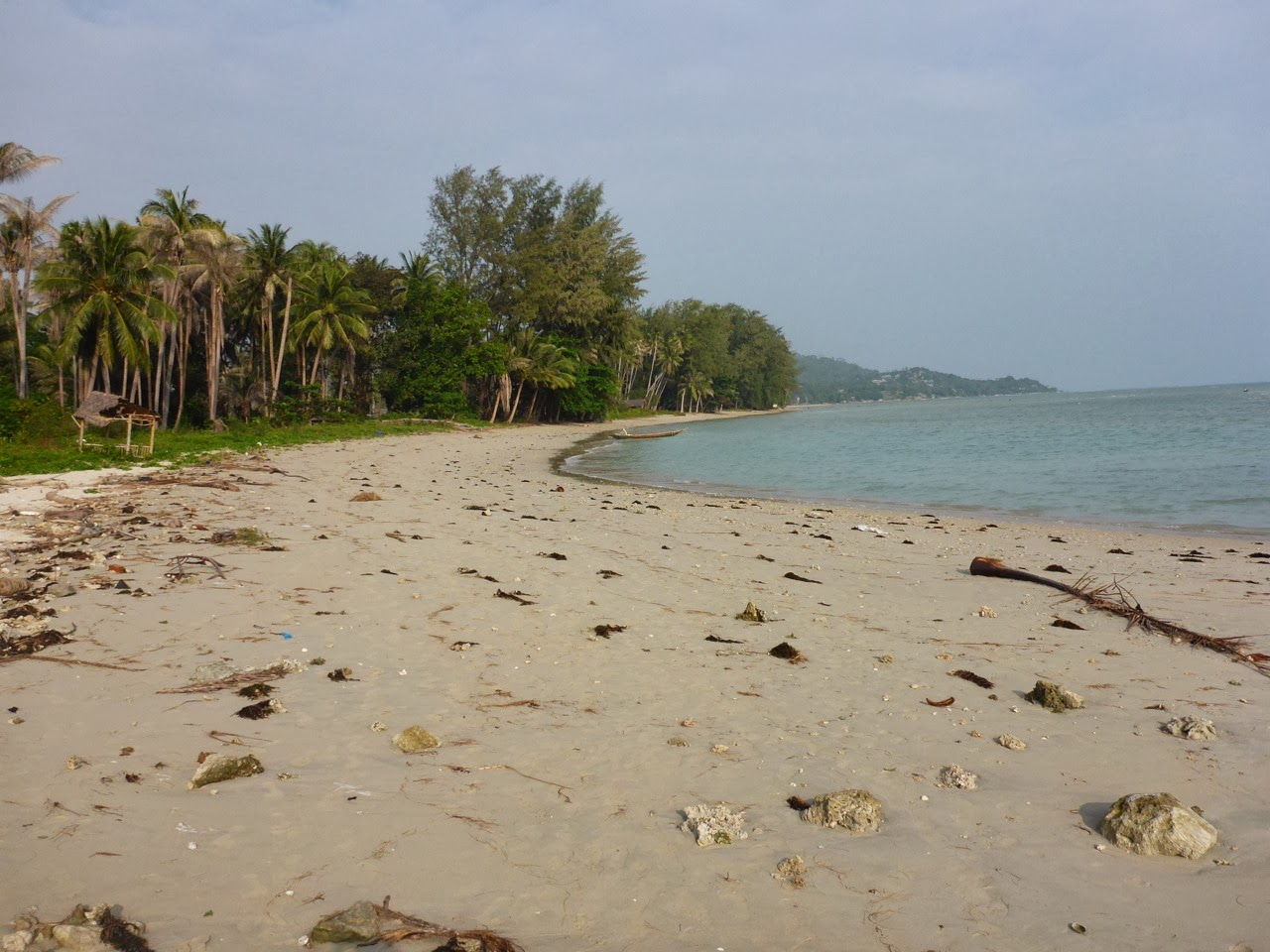 C’est sur la plage de Lamai, dans le golfe de Thaïlande, qu’on a choisi de passer ces 3 jours qui, après Hat Chawengplus au nord, est la deuxième plage la plus populaire et “normalement“ la plus belle de l’île. J’écris “normalement“ car malheureusement pour nous (et surtout pour Virginie et Gilles), la côte Est était balayée d’un vent du large depuis 10 jours qui ramène toutes les saloperies, dont les algues, sur le bord de la plage !! Du jamais vu “depuis des lustres“ d’après les locaux…