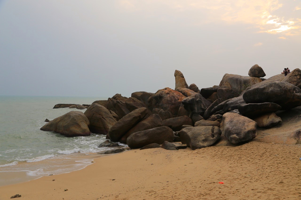 En continuant encore sur quelques kms et en quittant la route principale en direction de la plage, on découvre Hin-Ta et Hin-Yai (grand-père et grand-mère) qui sont deux formations rocheuses qui ressemblent à des organes génitaux. Autant le membre de papi est aisément identifiable, autant pour mami, il faudra regarder à 2 fois… la preuve, je n’ai même pas réussi à prendre correctement le foufouillon de la vieille dame et comme disait mon Pépé, on a assez vu d’horreur pendant la guerre !!
