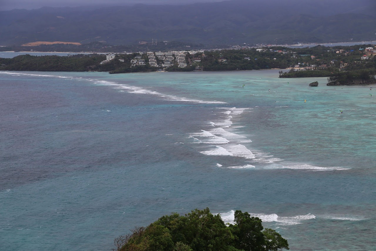 Mais avant d’y arriver, il faut mériter ce morceau de paradis et se montrer patient avant de fouler le sable de de Cagban Beach, dont le jetty port est le point d’entrée à Boracay. On a d’abord atterri à Kalibo qui fait son entrée dans le top 5 des aéroports les plus petits qu’on n’ait jamais vu. Au moins tu ne perds pas de temps à l’arrivée pour trouver le tapis roulant qui va t’apporter ton sac, il n’y en a qu’un… et l’aérogare d’arrivée ne doit pas faire plus de 100 m2, toilettes comprises ! Dans le hall sont disposés de petits stands de voyagistes qui proposent des transferts vers l’île de son choix. Pour rallier Boracay, il y a 2 bonnes heures de bus à travers la jungle et la montagne avant d’arriver tout au nord pour prendre un pumpboat qui débarque ses passagers à Manoc-Manocpour prendre une navette qui nous déposera enfin à l’hôtel. Enfin à l’appart’ dans notre cas, car pour commencer le séjour, nous avions loué sur airbnb un grand studio pour 3 nuits sur les hauteurs de Diniwid Beach.