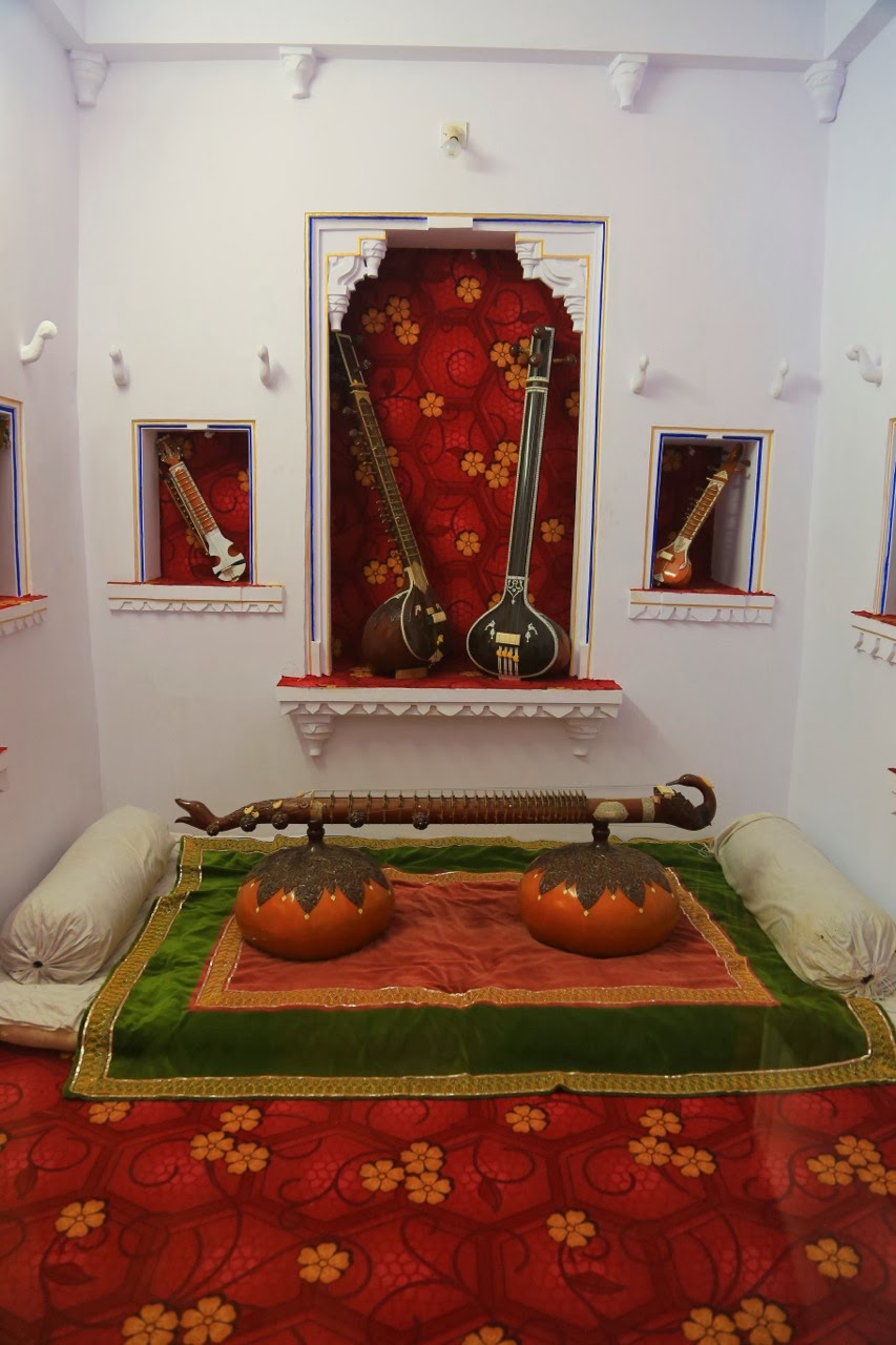 On a enchaîné avec Bagore-Ki-Haveli, un haveli (petit palais) de 138 pièces, restauré et reconverti en musée. On peut visiter l’armurerie et traverser une succession de salles et de couloirs mettant en scène des personnages en terre-cuite racontant le déroulement d’un mariage traditionnel. A l’étage, une salle remplie de poupées colorées raconte une journée de fête d’un maharaja et de sa cour. On peut également découvrir de très beaux vitraux, des patios fleuris, des petites salles richement décorées et une collection de turbans dont le plus grand du monde !