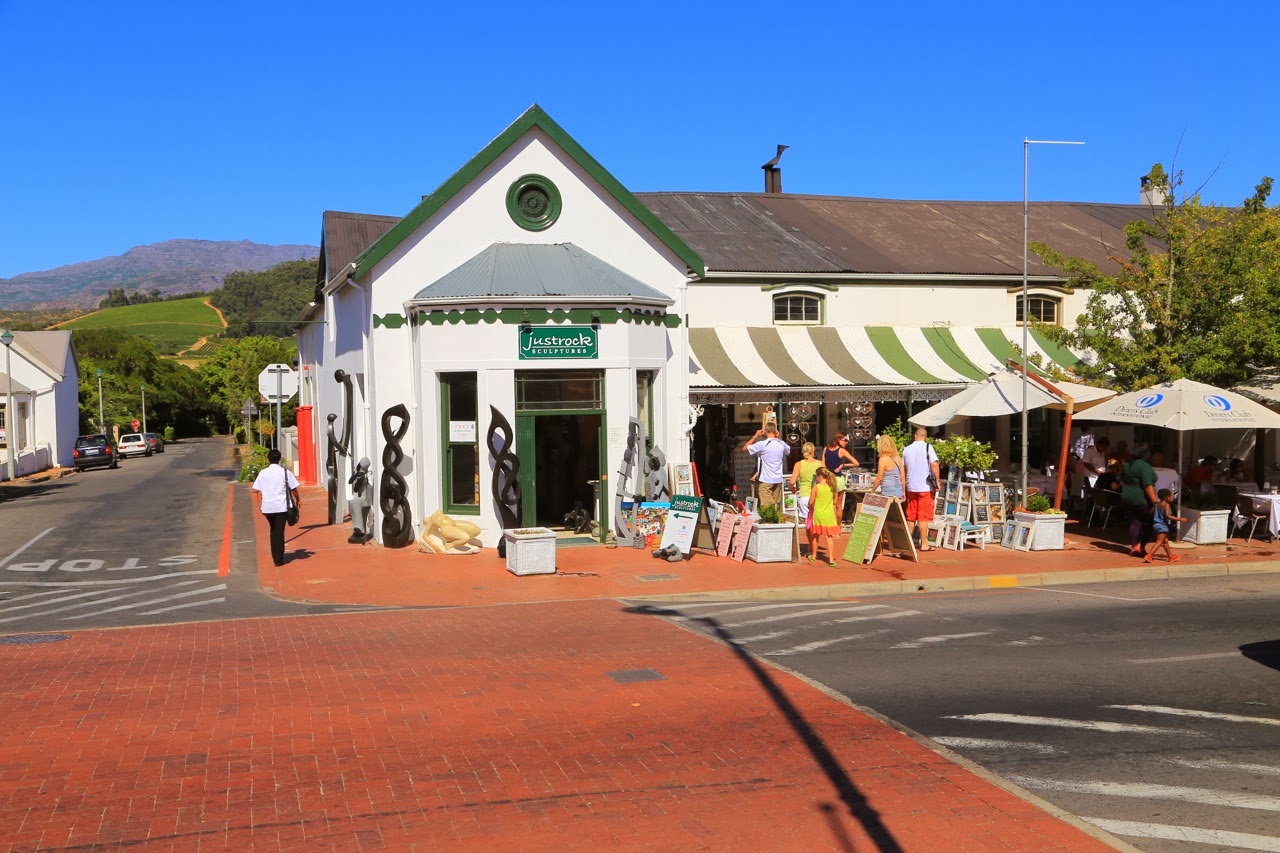 Franschoek est un gros village assez bourgeois, comme c’est souvent le cas dès qu’on est dans une région viticole. Il n’y a vraiment qu’une seule grande rue qui traverse la bourgade bordée de restaurants, de petites galeries de peintures ainsi que de boutiques d’artisanat local.