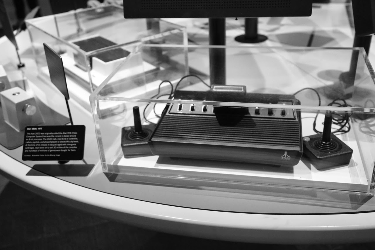 On finit les deux jours de visite par une session “musée“. A Federation Square, le très intéressant Australian Centre for the Moving Image (ACMI) qui retrace l’histoire du cinéma mais aussi l’avènement d’Internet et des jeux vidéos et de leur influence dans l’Industrie du 7èmeart. Le musée fait un gros focus sur les gloires nationales, les acteurs évidemment (Nicole Kidman, Russel Crowe, Cate Blanchett, Hugh Jackman ou feu Heath Ledger) mais aussi les réalisateurs et les films qui ont cartonné au box-office comme Australia, Crocodile Dundee, Moulin Rouge ou Happy Feet. Outre le chapeau de Paul Hogan, on y trouve aussi l’Interceptorde Mel Gibson dans Mad Max et toute la genèse des consoles de jeux. Je ne peux m’empêcher de prendre un coup de vieux devant l’Atari 2600 qui date……… de 1977 et de jouer à International Karate avec le préhistorique Commodore 64 que mes parents m’avaient offert et qui fut à l’origine de mon intérêt pour l’informatique.