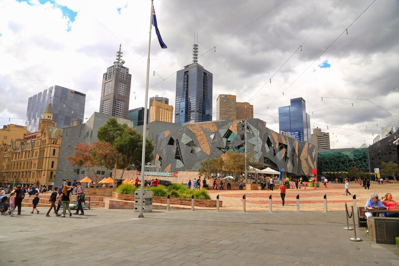 D’autres bâtiments datant de l’époque victorienne sont tout autant magnifiques : le City Hall(1874), la State Library of Victoria(1854), le Royal Institute of Technology(RMIT, 1887), Princess Theatre(1857), le Parliament House of Victoria(1856) ou la gare de Flinders Street Station (1909), etc. Bref, on passe une bonne partie de la journée, le nez en l’air, à admirer l’architecture des immeubles. Le style est évidemment différent de “chez nous“ mais je ne peux m’empêcher de réaliser que pour aimer une ville, il nous faut la présence de ces anciennes constructions qui donnent un cachet historique à la cité ; c’est ce qu’on aimait à Strasbourg…