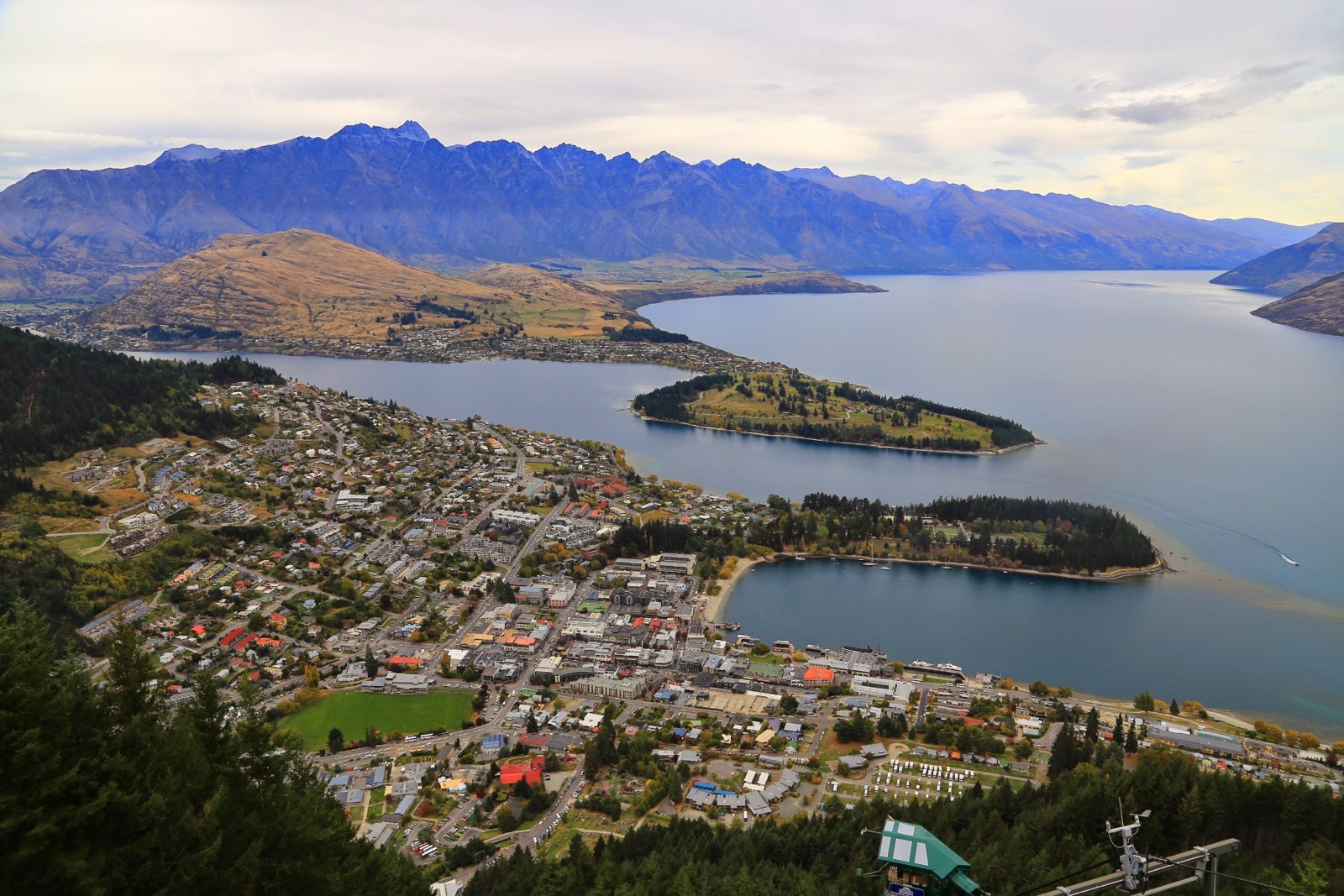 Avant de rejoindre le Parc National de Fiorland qui fera l’objet du prochain article, on s’arrête à Queenstown au bord du lac Wakatipu. Changement total d’atmosphère, bienvenu dans le paradis des sports à sensation ! Ici, impossible de s’ennuyer et le choix est vaste : saut à l’élastique, parapente, chute libre, escalade, VTT, rafting, ski nautique, jetboat… mais pour les plus “pépères“, il y aussi le pédalo tricycle, la marche, le trek à cheval ou la traversée du lac sur le TSS Earnslaw, un antique bateau à vapeur datant de 1912 ! On fait encore plus soft, en prenant le Skyline Gondola, des télécabines qui nous emmènent jusqu’au sommet de Bob’s Peak (790 m), nous offrant un point de vue magnifique sur toutes les montagnes aux alentours (Walter Peak 1815 m, Cecil Peak 1974 m, Double Cone 2343 m) et qui plongent littéralement dans le lac. On fait la petite marche de 30 min proposée au sommet et le soleil fait enfin de timides apparitions.