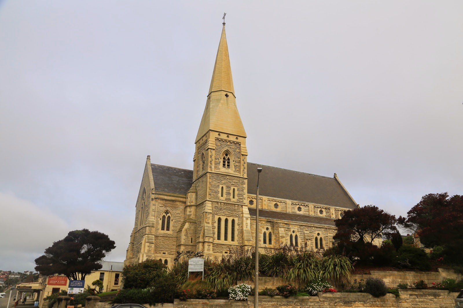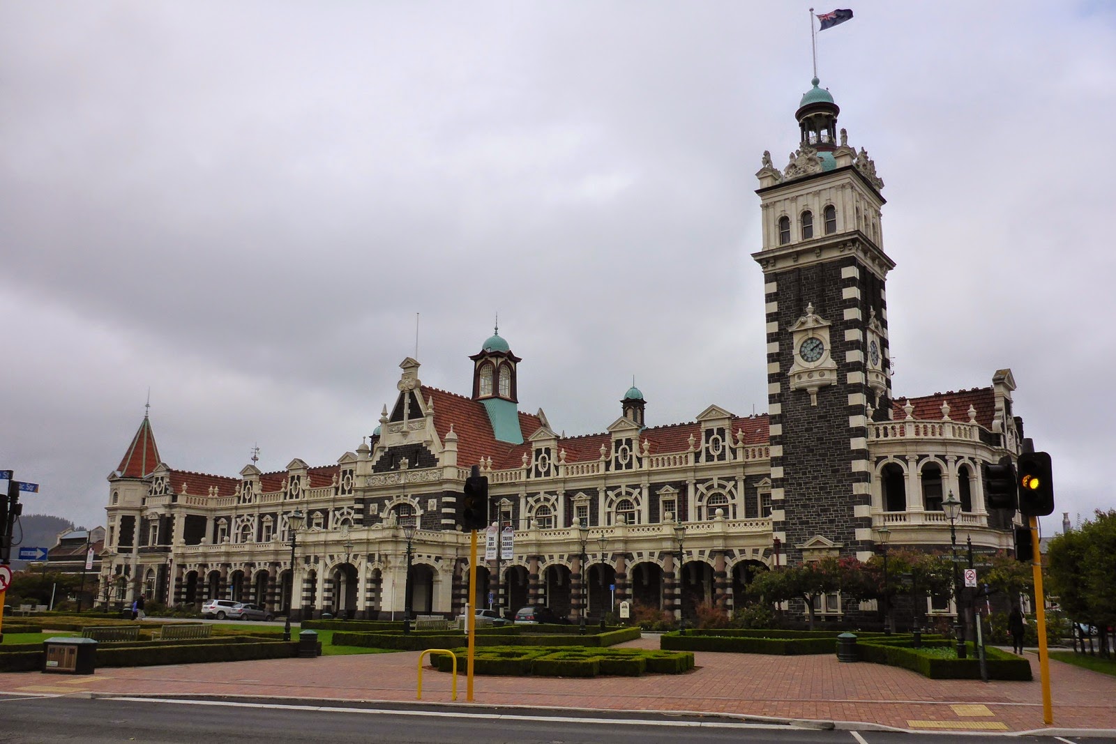 Avant de trouver un campsite où passer la nuit, on fait un dernier tour de la ville et de ses bâtiments : St Paul’s Cathedralet quelques autres églises gothiques. Pour finir, on s’arrête devant la magnifique Railway Station d’où part un train historique des années 20 (Taieri Gorge Railway) pour un tour de 4h, passant dans des tunnels étroits, au-dessus de viaducs enjambant des gorges et des canyons de 50 m de profondeur ; mais la météo maussade nous découragera de nous y intéresser davantage !