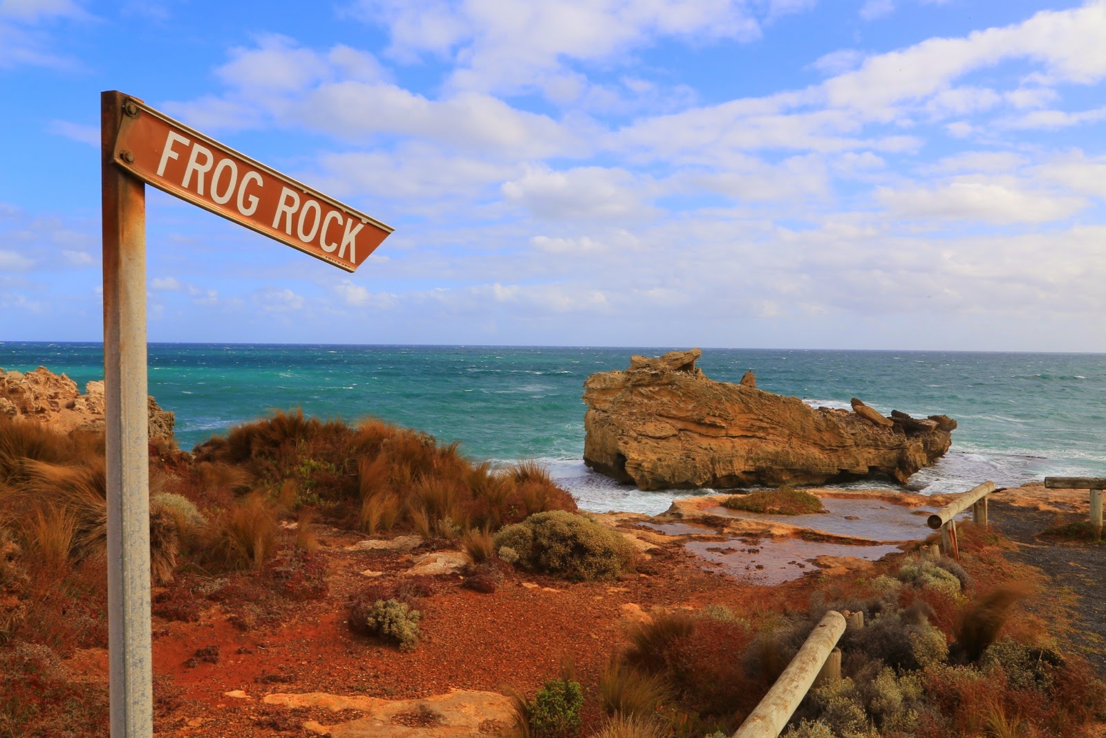 Stop 4, Mount Schank : on couvre un gros morceau de route en s’arrêtant à chaque lookout intéressant et on retrouve la Princes Highway qu’on a emprunté dès nos débuts à Sydney. On veut faire étape à Port Macdonnell et on se promène sur les falaises du cap non loin du village. Ici, on a donné des noms d’animaux aux formations rocheuses (rhino, camel, frog) qui caractérisent assez bien la forme que le temps et l’érosion ont réussi à sculpter. Le point de vue est superbe et le camping n’y est pas interdit mais le vent est beaucoup trop fort pour envisager d’y passer la nuit.