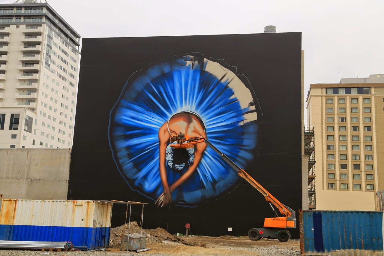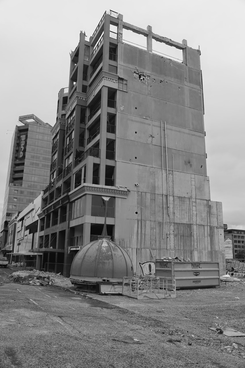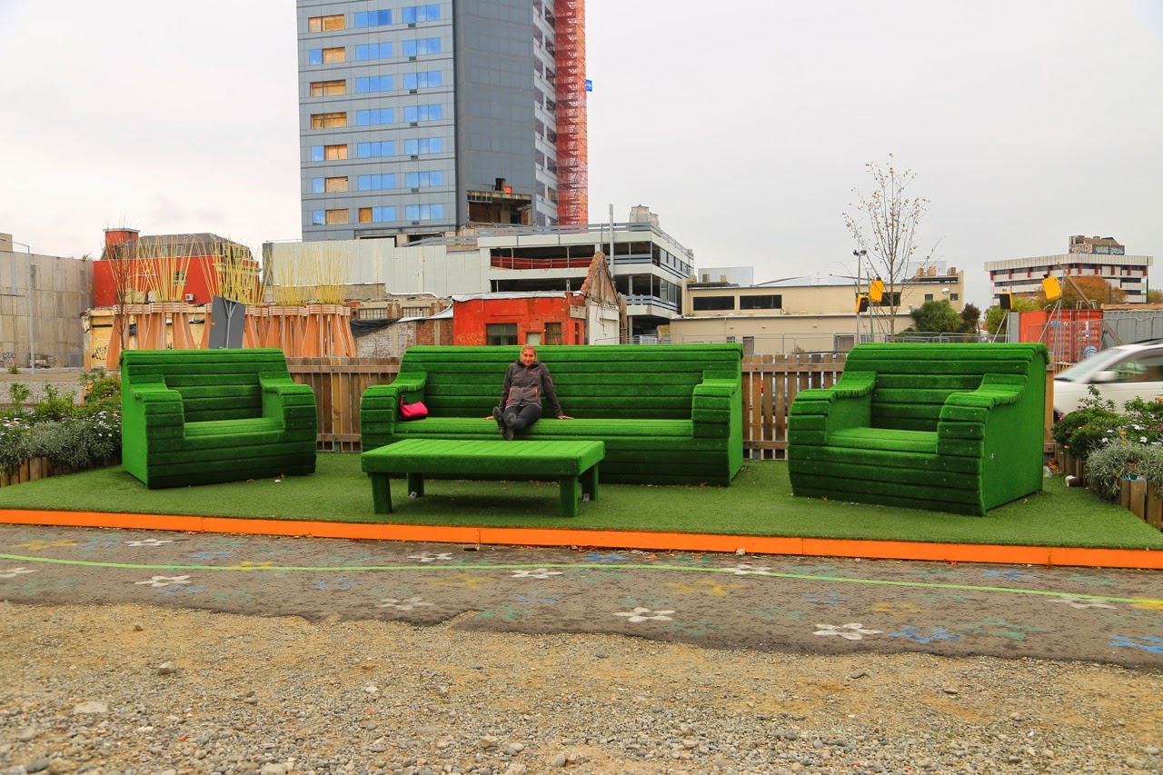 C’est sous un ciel gris et une bruine qui tombe par intermittence qu’on découvre Christchurch. On a un peu de mal à trouver le centre, pourtant le GPS de l’iPhone nous indique que nous sommes tout près, à quelques centaines de mètres seulement de Cathedral Square. On se gare dans High Streetmais il n’y a presque personne dans les rues. On s’approche de la fameuse Cathédrale consacrée en 1881 et on découvre avec stupeur que sa flèche s’est totalement écroulée et le reste est soutenu par un échafaudage de poutres métalliques. C’est à ce moment qu’on se rappelle un reportage des Nouveaux Explorateurs vu sur Canal+ et que la ville a été frappée par un violent tremblement de terre le 21 février 2011. Prenant conscience de la tragédie, on regarde autour de nous et on comprend mieux les palissades et les grilles de chantier de (re)construction et les “trous“ laissés par les immeubles manquants. En passant devant les vitrines d’un Starbucks et d’un Foot Locker, on zieute à l’intérieur pour apercevoir des locaux dévastés et abandonnés par les clients comme si le séisme avait eu lieu hier !