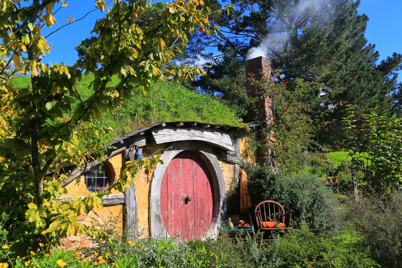 Raison de plus pour revenir un jour mais pour l’heure on a rendez-vous avec le Seigneur des Anneaux et plus précisément les Hobbits dont nous allons visiter le village qui a servi au tournage de la trilogie du Seigneur et des 2 premiers épisodes du Hobbit. Le site est paumé dans la campagne néozélandaise, près de Matamata, et a été découvert en septembre 1998 par Peter Jackson lors d’un survol de repérage. Les lieux ont largement été transformés, notamment par l’armée qui, outre la construction d’une route d’accès de 1,5 km pour acheminer le matériel et les équipes de tournage, a dû assécher un marais pour ce qui allait devenir la “Place des fêtes“.