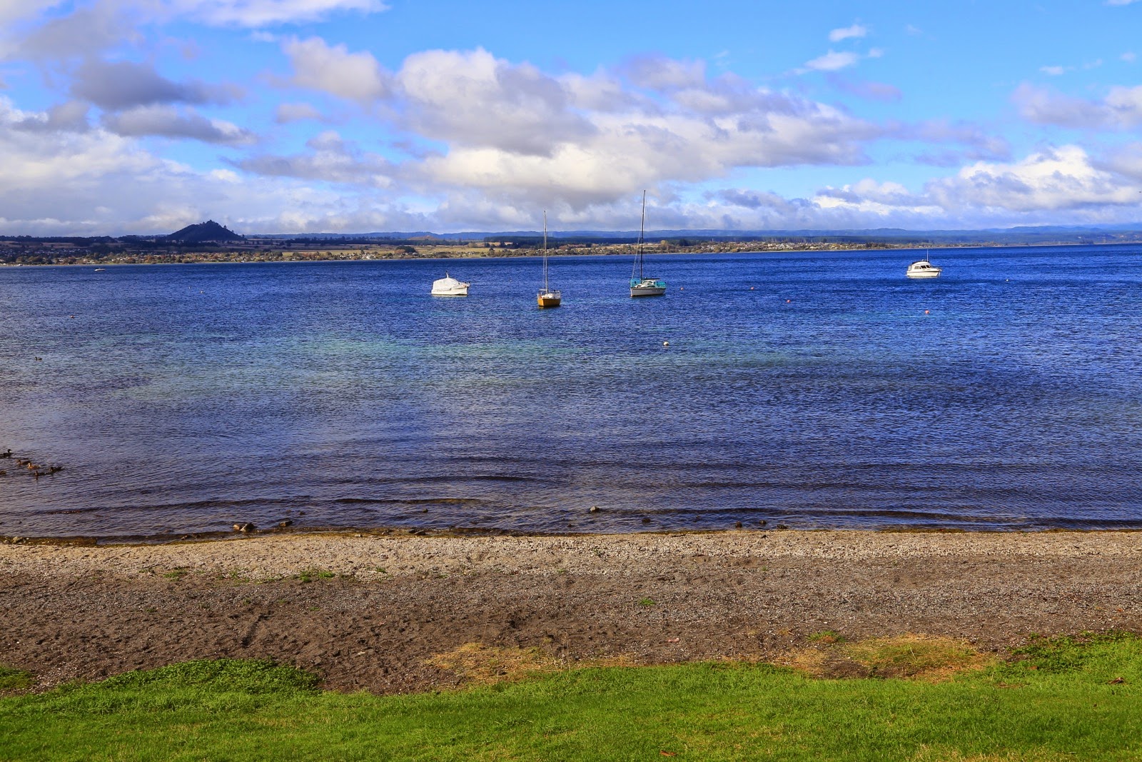 Mais avant on arrive au Lac Taupo, le plus grand de NZ avec une superficie de 606 km2, formé dans le cratère d’un volcan il y a plus de 26500 ans. L’activité volcanique est encore largement visible aujourd’hui notamment avec la présence de sources chaudes tout le long de la route n°5. Tout comme Queenstown, la ville offre un large choix d’activités autour et sur son lac mais elle est surtout connue pour être la capitale du saut en parachute.