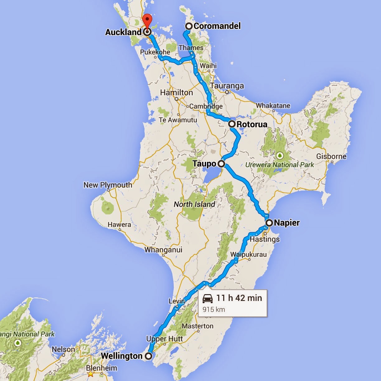 Après le ferry entre Picton et Wellington, notre route sur l’île Nord :