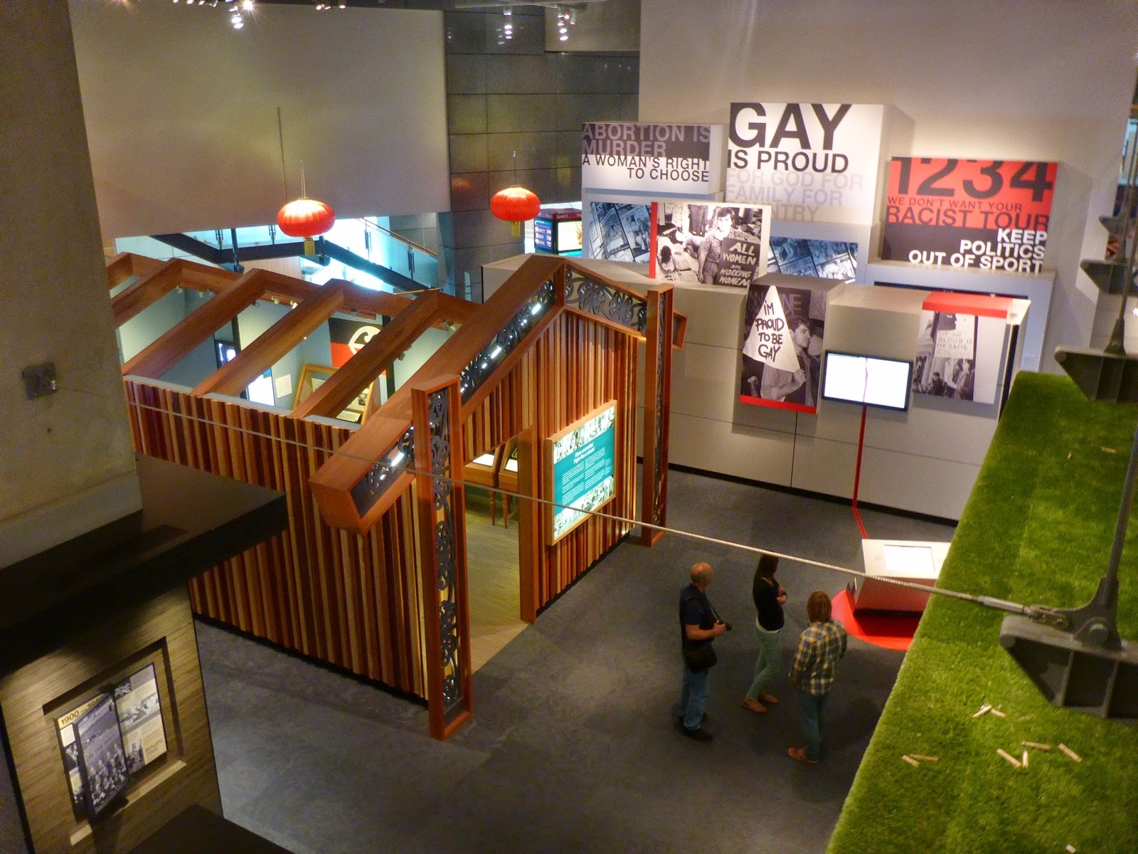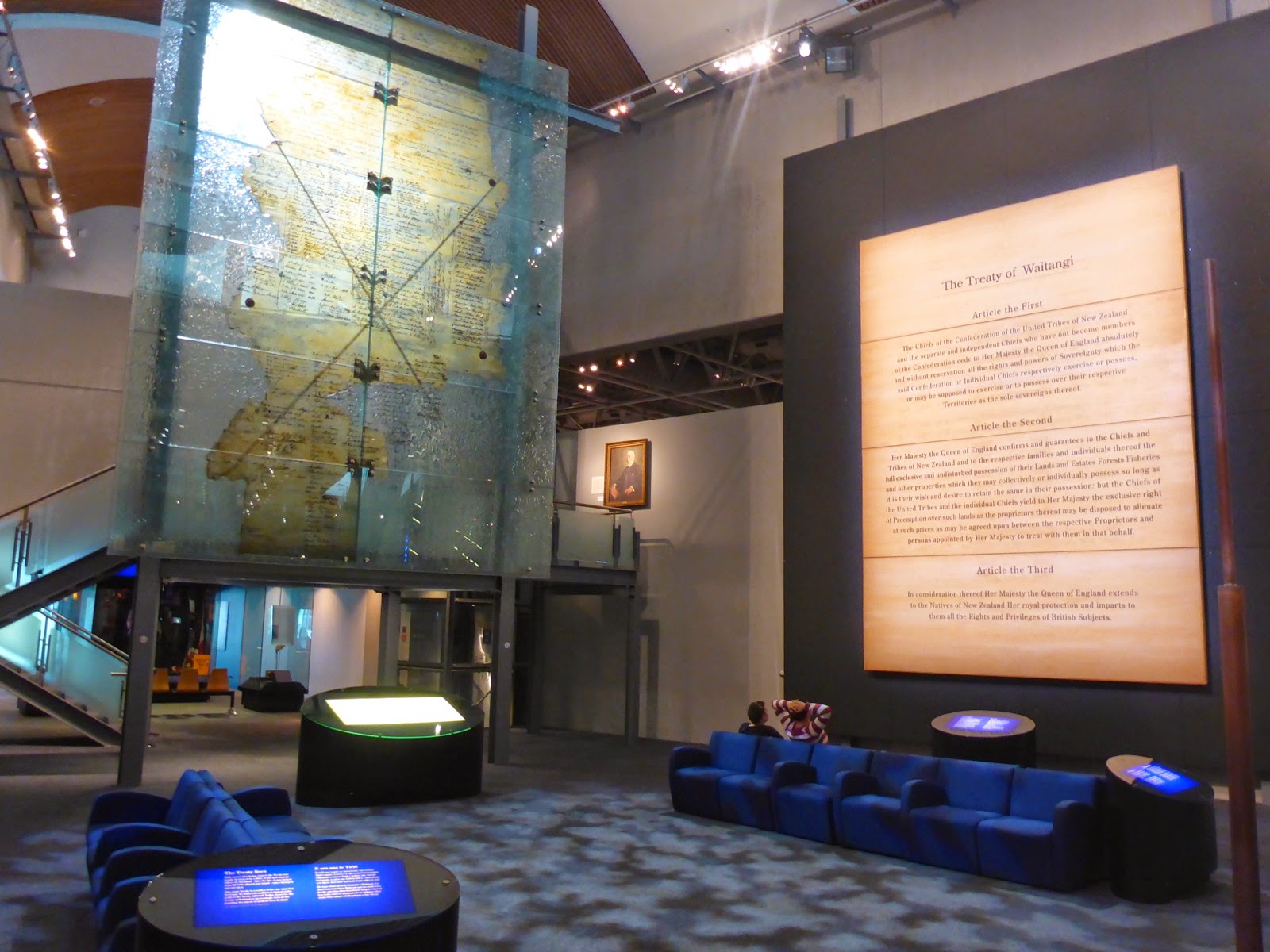 A nos pieds, jouxtant le port, on repère un énorme blockhaus, Te Papa Museum, autoproclamé “LE“ musée de Nouvelle-Zélande. A juste titre d’ailleurs car on y passe près de 3h mais il est très facile d’y rester une journée entière, tant ses expositions sont extrêmement intéressantes et bien conçues. On y (re)découvre la culture Maori avec une collection impressionnante d’objets accompagnée d’explications détaillées. On y apprend toute l’histoire de la NZ, des premières tribus aux derniers tremblements de terre, en passant par les All Blacks. Les expositions sont largement interactives et il y a plusieurs secteurs dédiés aux enfants. Il y a un département d’histoires naturelles où l’on peut voir le seul calamar géant au monde, pêché par hasard dans les filets de marins néo-zélandais. On y trouve également une galerie dédiée aux impressionnistes et des expositions temporaires d’art contemporain. Bref, impossible de passer à côté de ce musée lors d’un séjour à Wellington !