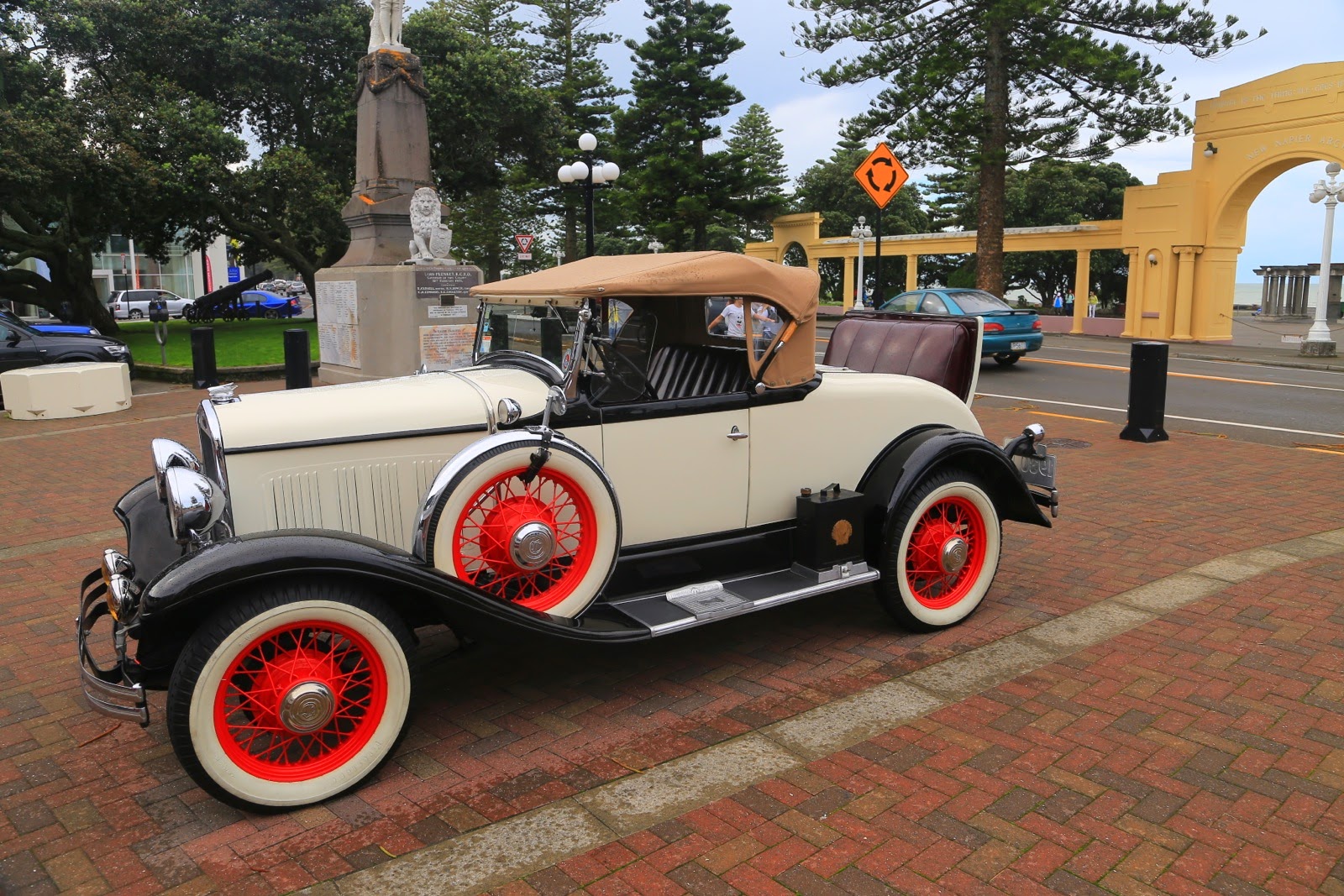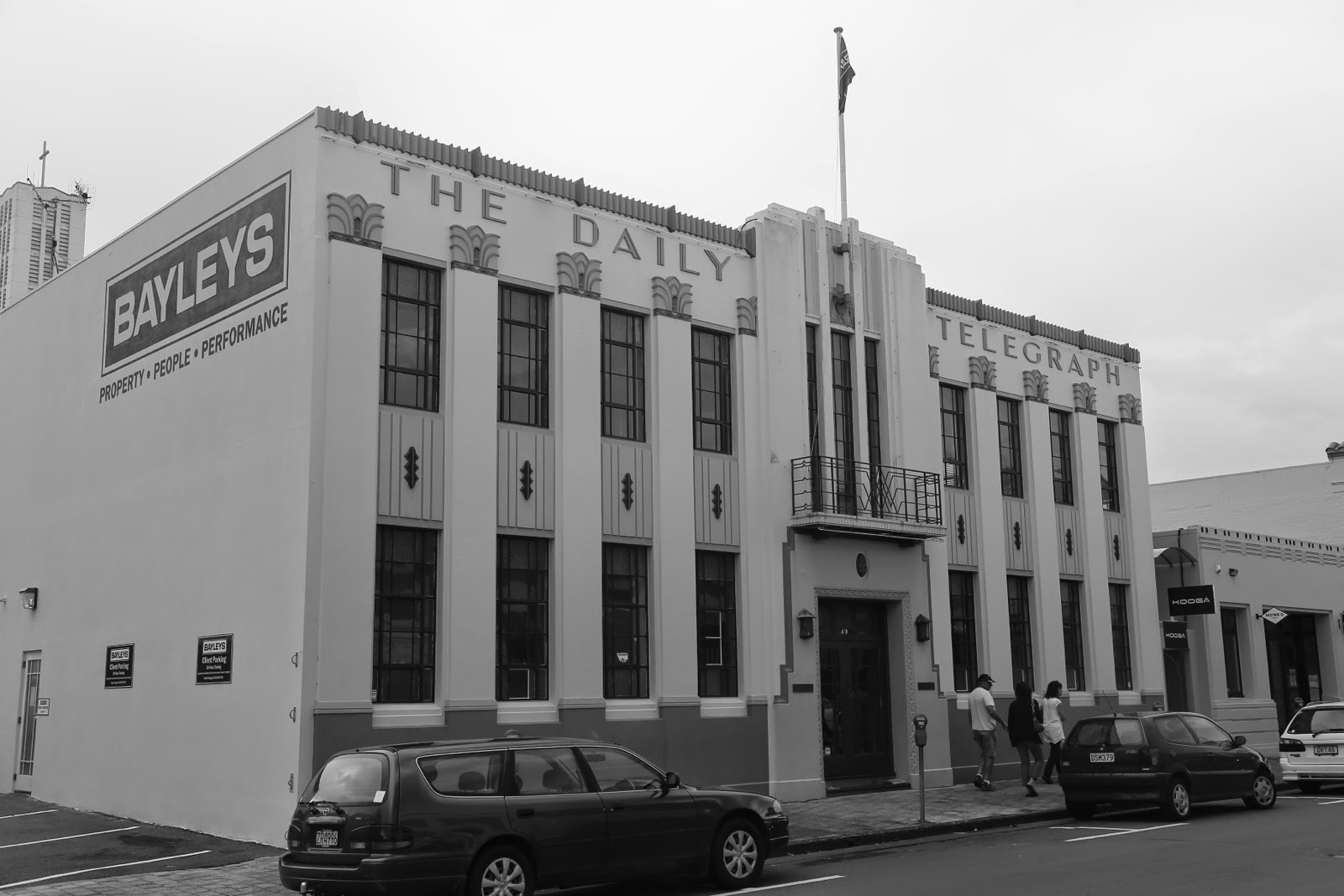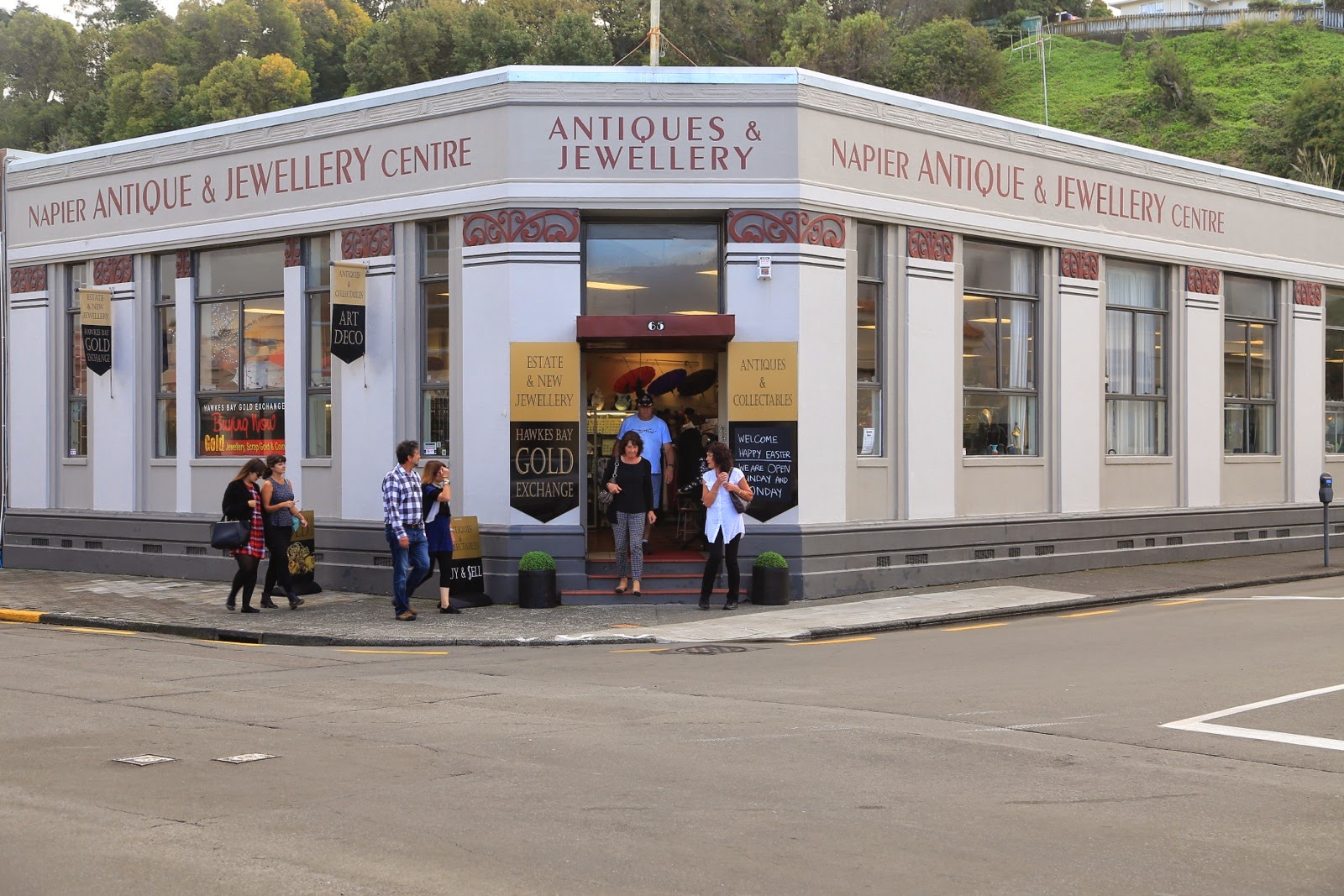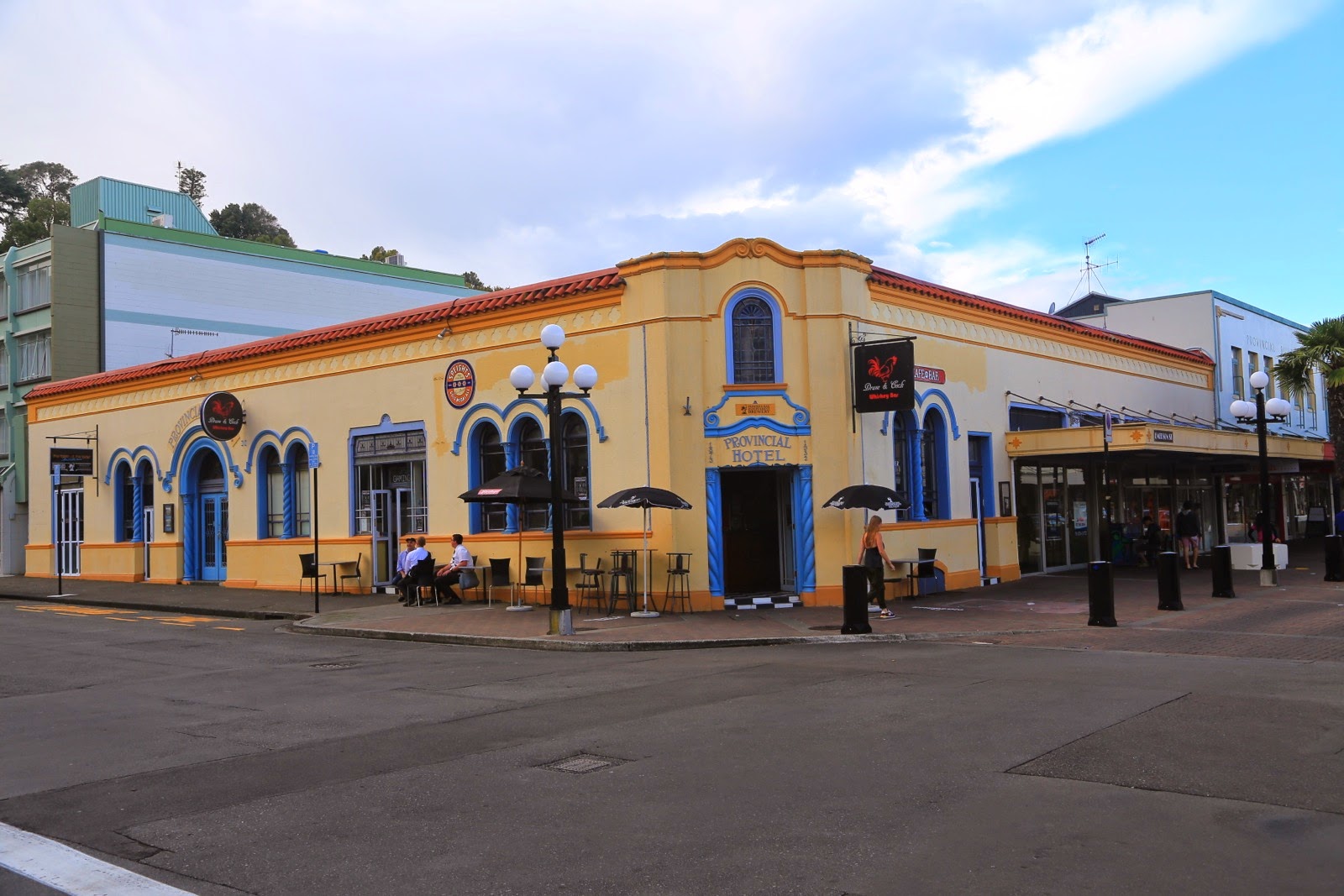 Nos potes belges, Astrid et Bruno, nous avait conseillé la visite de Napier, qu’ils n’avaient pas pu découvrir mais qui est réputée pour l’architecture de ses bâtiments. Le centre ville a été entièrement reconstruit après le terrible tremblement de terre de 1931 dans un style Art Déco tout en mélangeant des motifs anciens tels que mayas, égyptiens et même maoris. Se balader dans les rues de la bourgade est un saut dans le passé et on s’émerveille devant chaque façade peinte en couleurs pastel. On suit sagement le tracé du Lonely qui nous explique l’origine des immeubles car nombreux sont ceux qui n’ont plus leur vocation d’antan, comme l’Hotel Central qui, derrière ses murs crème aux motifs roses, abrite désormais un club de striptease et de massage !!! Beaucoup de ces très beaux bâtiments sont d’ailleurs à louer.