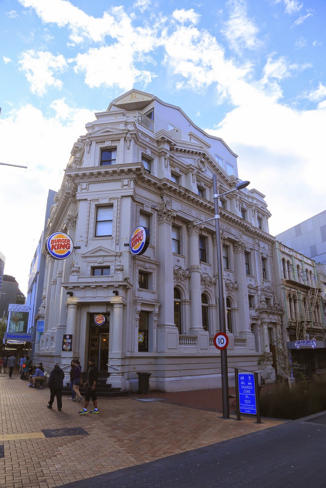 Depuis que nous sommes en NZ, on a compris que les centres des villes ont un certain cachet avec des immeubles début 1900, de style victorien ou Art Déco et Wellington n’échappe évidemment pas à la règle ! Un petit tour dans Civic Square ou dans Cuba Street nous en convint définitivement. Même le Burger Kingest super “classos“, installé au RDC d’un ancien immeuble de la Bank of New Zealand !!!