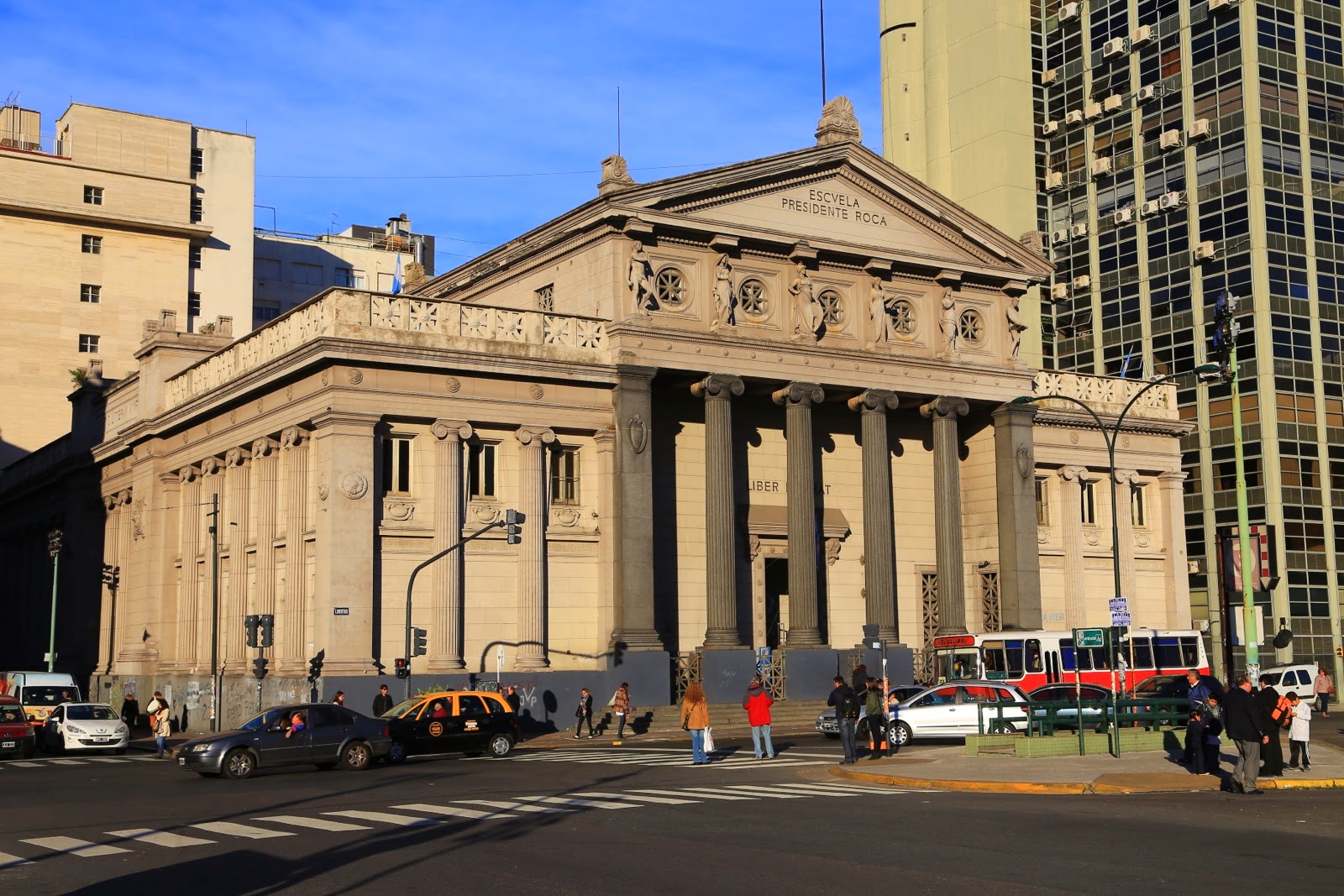 Le lendemain, on reprend la gigantesque Avenida 9 de Julio, passant devant les 67 m de l’Obeliscopour revenir au théâtre et apprécier de jour le mélange de styles italiens et français de son architecture. On retrouve la même inspiration sur les autres bâtiments de la Plaza Lavalle et l’on peut admirer en face le Palacio de Justicia (1904) et l’Escuela Presidente Roca (1902) juste à côté.
