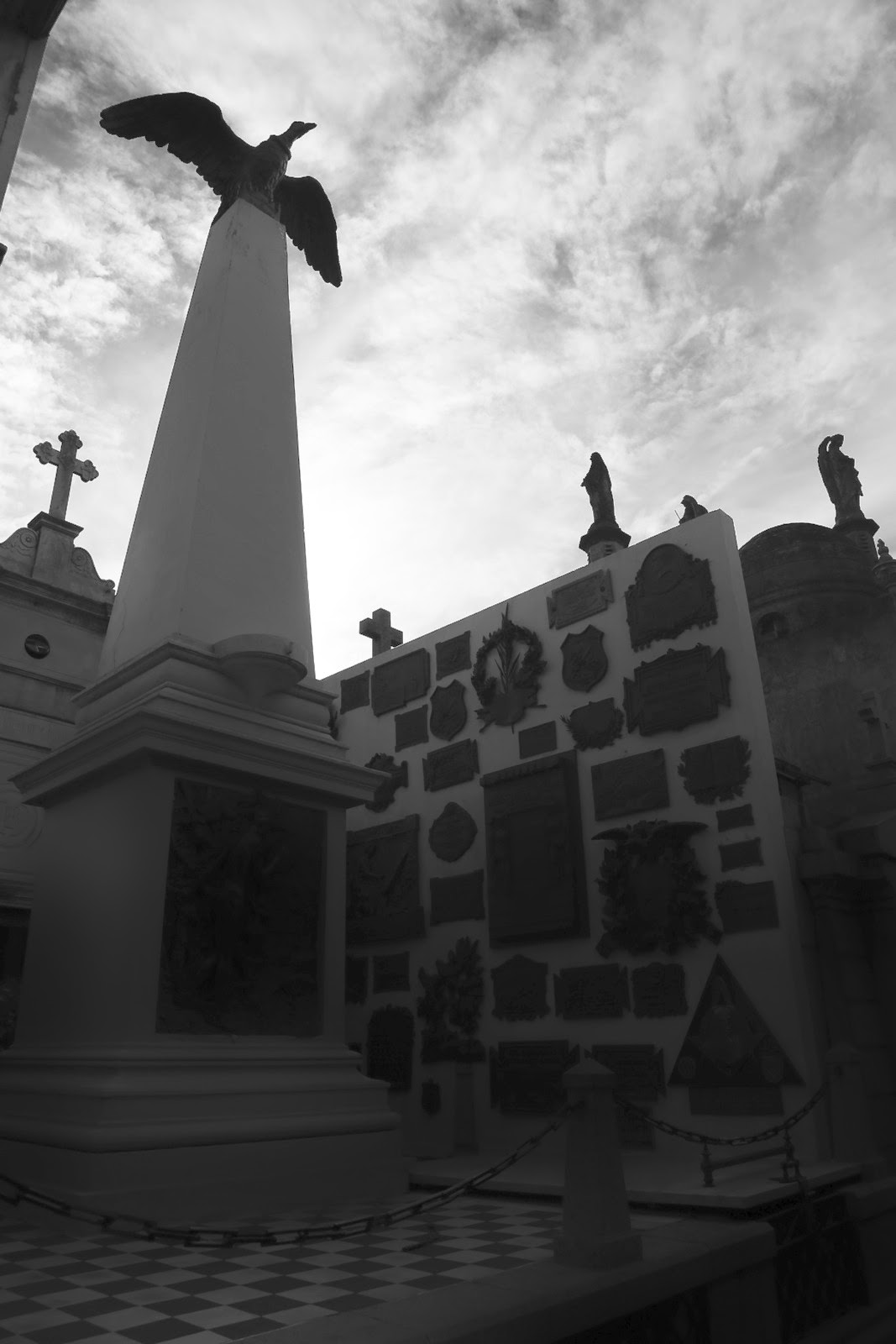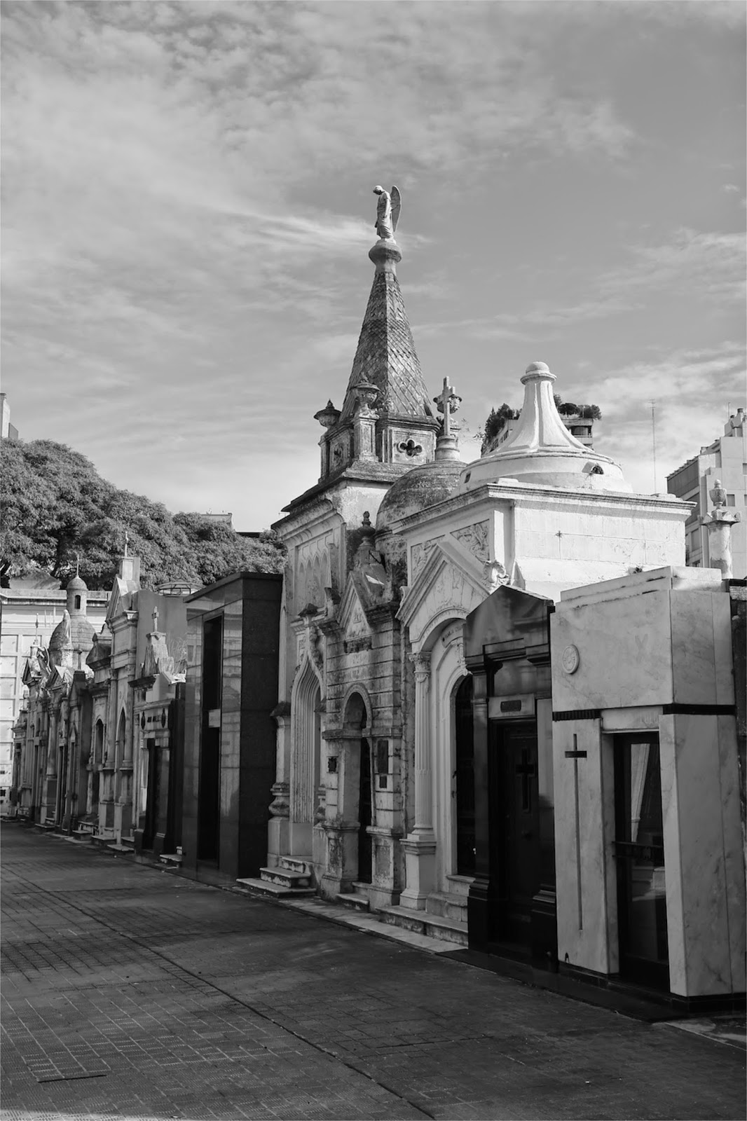 Les 2 journées suivantes, on continue notre exploration de la capitale argentine avec le quartier de Recoleta, “LE“ quartier le plus chic de la capitale dont les avenues sont bordées de demeures anciennes et d’hôtels particuliers. On y va surtout pour son Cementario qui contient les caveaux où reposent les dépouilles de l’élite de la ville, le plus connu étant la tombe d’Evita. On se surprend à déambuler pendant près d’une heure dans les allées de ce cimetière hors du commun, au milieu des statues et des impressionnants tombeaux en marbre ou en pierre, tous dotés d’une architecture très travaillée. Le lieu se prête particulièrement à quelques clichés en N&B.