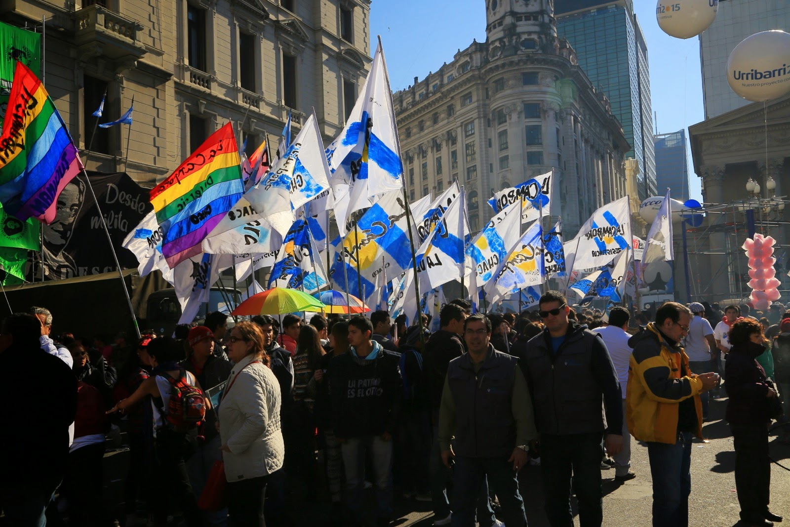 Le dimanche, lorsqu’on entreprend de visiter le Microcentro, on s’étonne de voir les rues totalement vides ! Mais plus on s’approche de la Plaza de Mayo, plus on rencontre de gens équipés de banderoles, de drapeaux ou d’instruments de musique. C’est à ce moment qu’on se rappelle une conversation avec 2 canadiennes rencontrées dans la navette allant à l’aéroport de Puerto Iguazu qui nous avaient parlé de la proclamation de l’Indépendance de l’Argentine vis-à-vis de l’Espagne, le 25 mai 1810. L’ambiance était donc à la fête et on ne pouvait que se réjouir de vivre ce moment au milieu des Porteños mais aussi des habitants d’autres régions à en croire le nombre impressionnant de bus qui ont transformé l’Avenida 9 de Julio en gare routière géante !