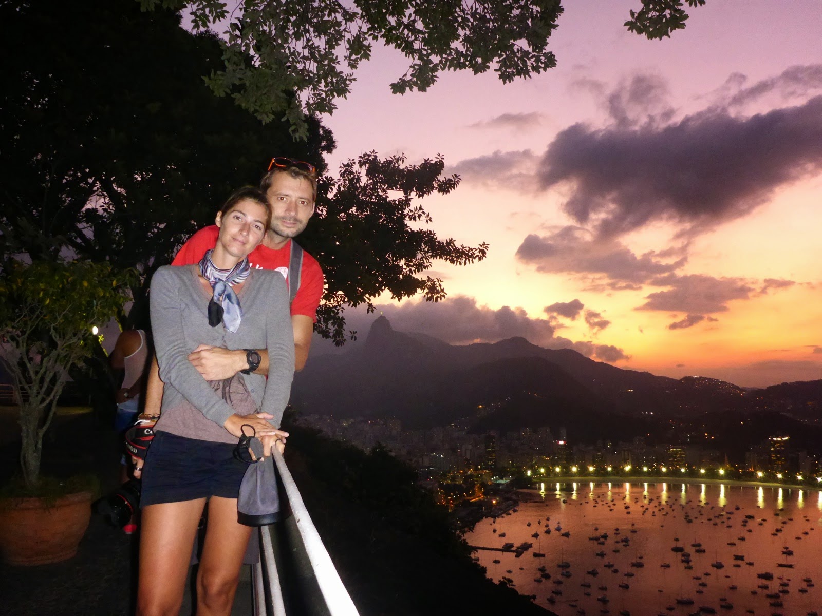 Une fois sur la plateforme du Pain de Sucre, on ouvre le concours photos et on mitraille de tous les côtés : sous-exposition, noir & blanc, mode créatif (pour Adèle), modif de la balance des couleurs, temps de pose… tous les réglages y passeront et je sens déjà la galère pour trier le bordel !! J’ai bien dû photographié le pic granitique du Corcovado toutes les 2 minutes et pourrais faire une expo avec toutes les différentes nuances d’indigo que prend la montagne avec le jaune-orangé du ciel !
