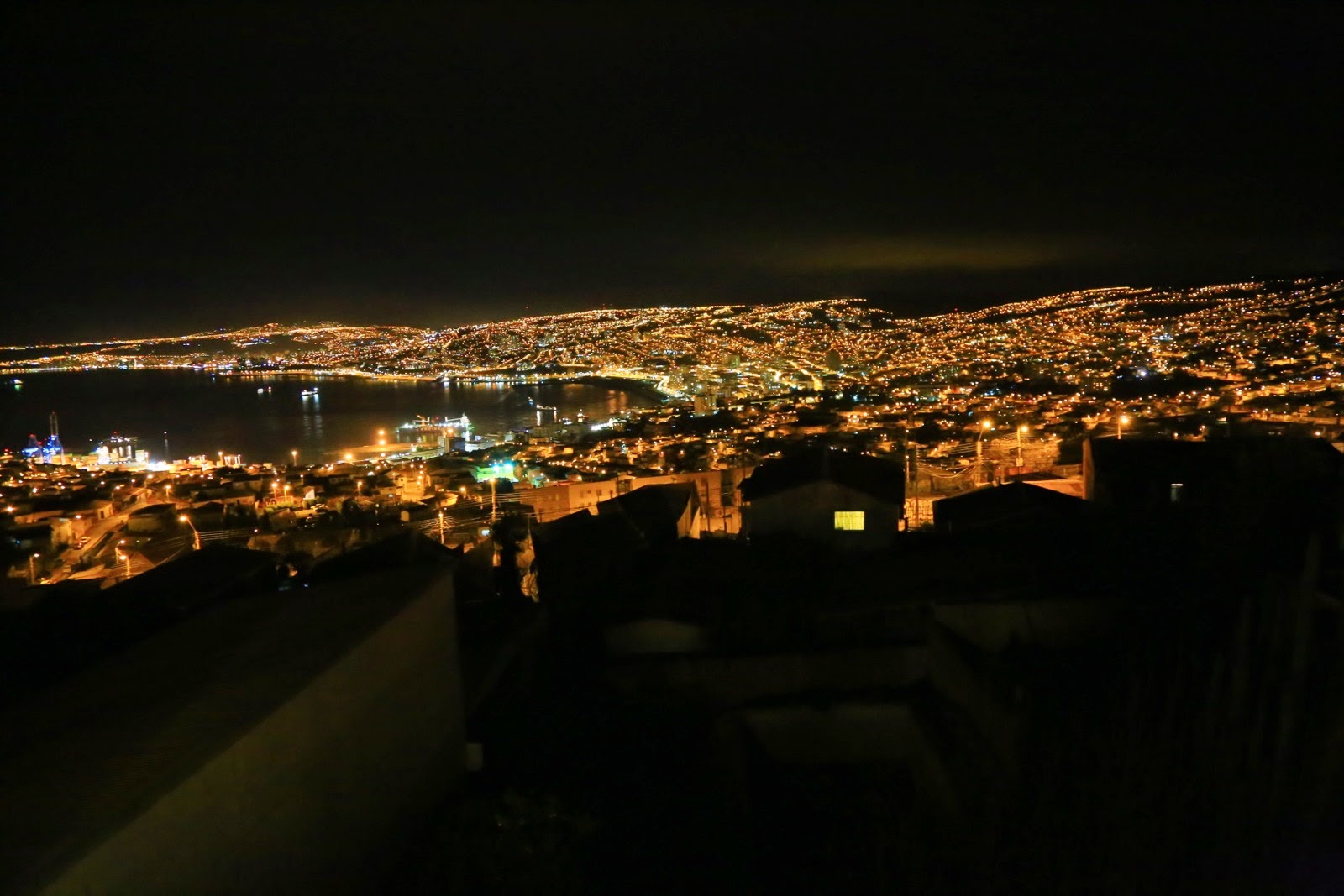 Après les 4 vins blancs, on attaque les 4 vins rouges (!!!) avec en toile de fond la baie illuminée de Valpoet la discussion continue de plus belle sur les voyages, nos expériences et leur installation incroyable.