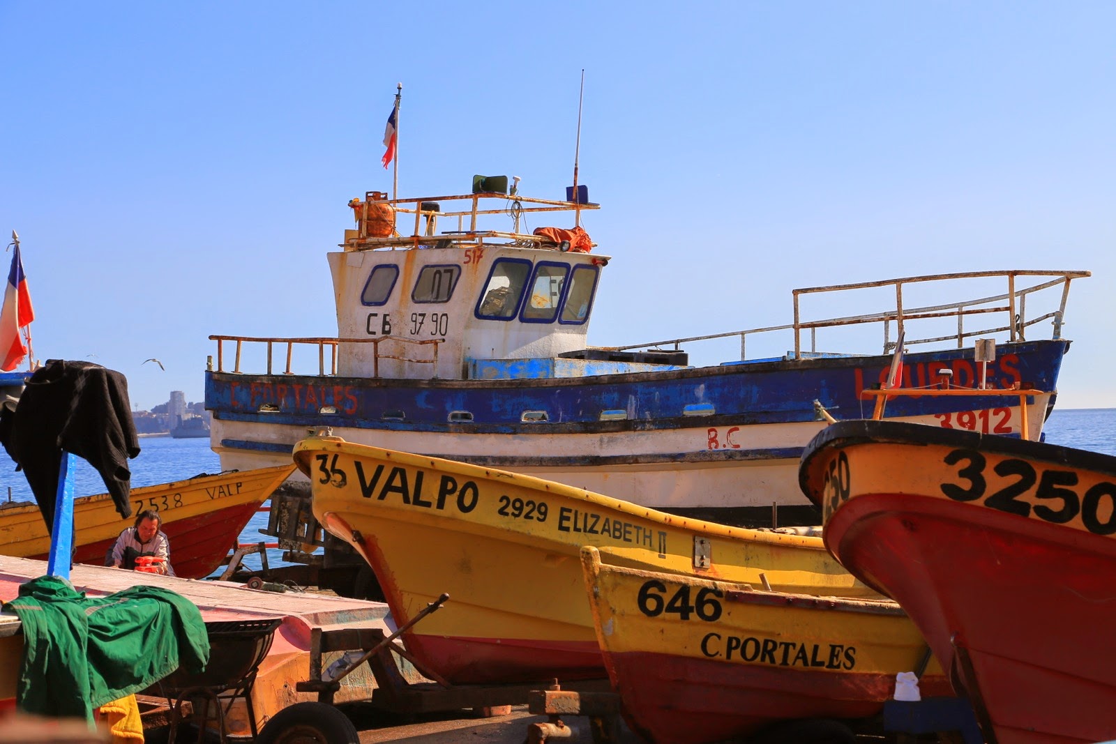 Sur la route de Viña del Mar, il y a d’abord l’impressionnant bâtiment de l’Universidad Tecnico Federico Santa Maria mais il y a surtout le marché aux poissons de Caleta Portales. Hormis le spectacle habituel des pêcheurs vendant à la criée leur pêche du jour sur des étales aux normes d’hygiène douteuses pour un Européen, la foule se masse sur le ponton en bois. A l’heure où l’on nettoie les stands, les lions de mer et les pélicans se battent pour les restes qui sont balancés, engendrant un chahut spectaculaire pour le plus grand plaisir des visiteurs !