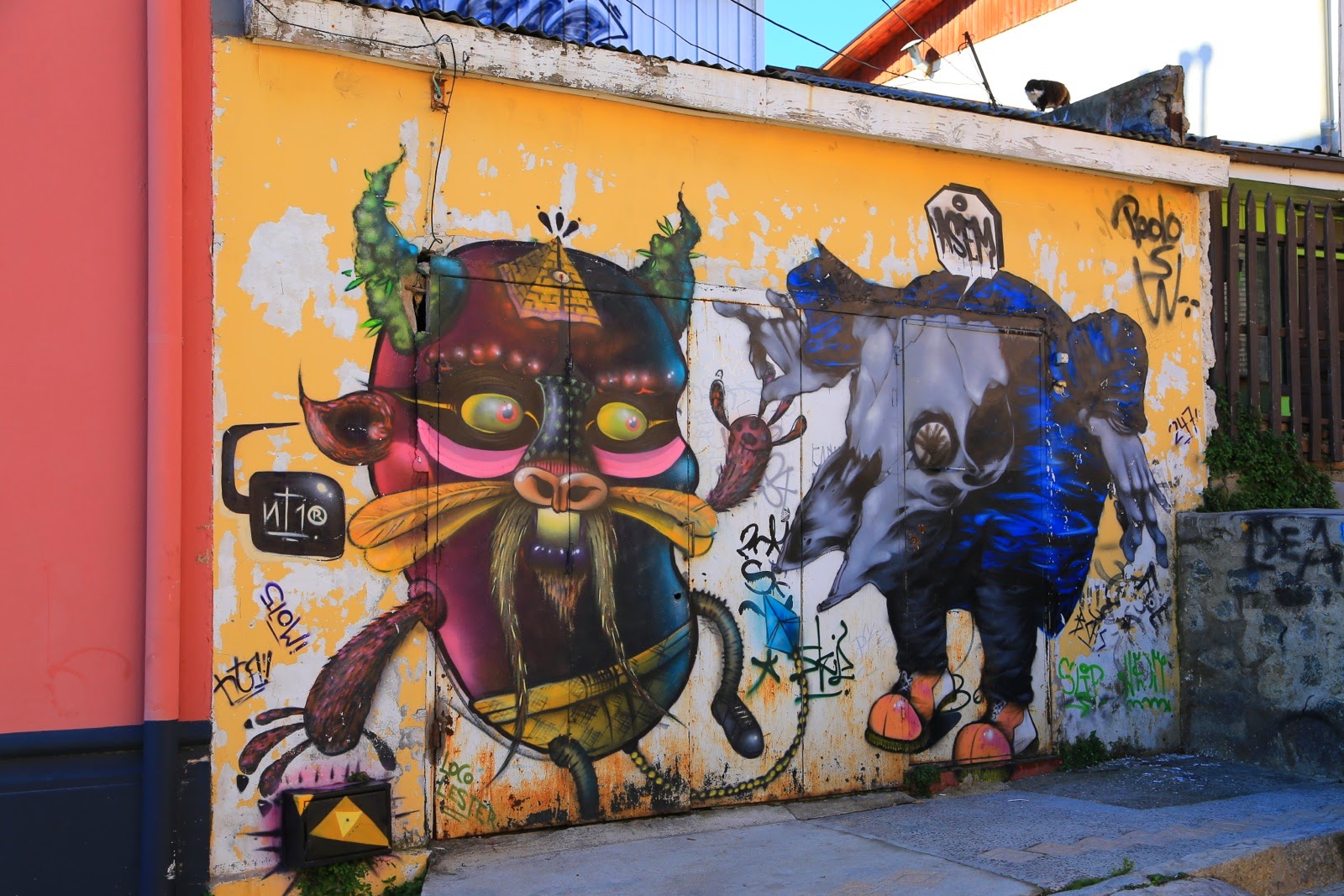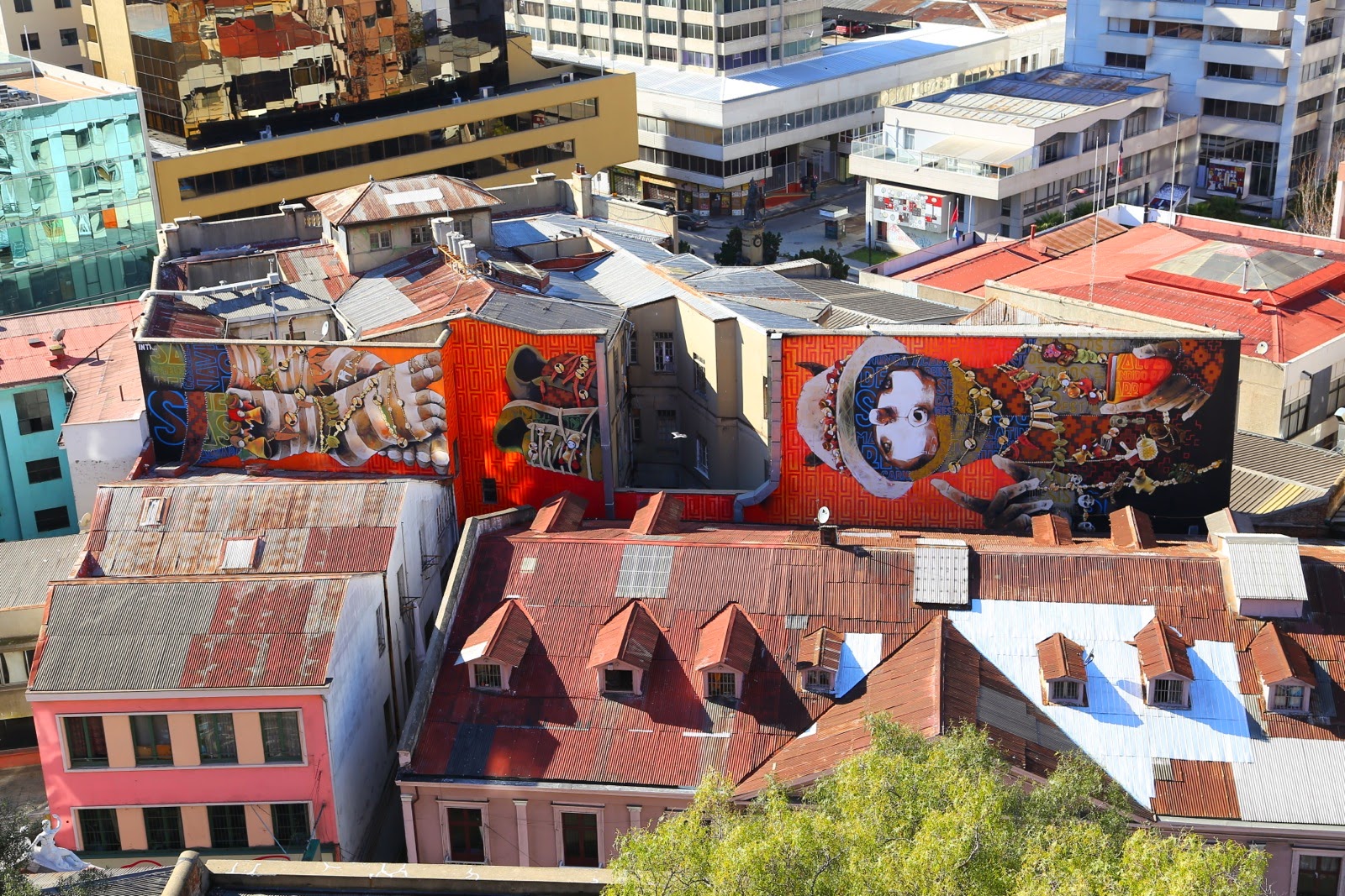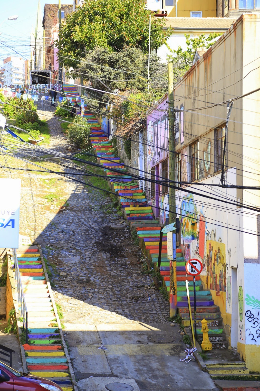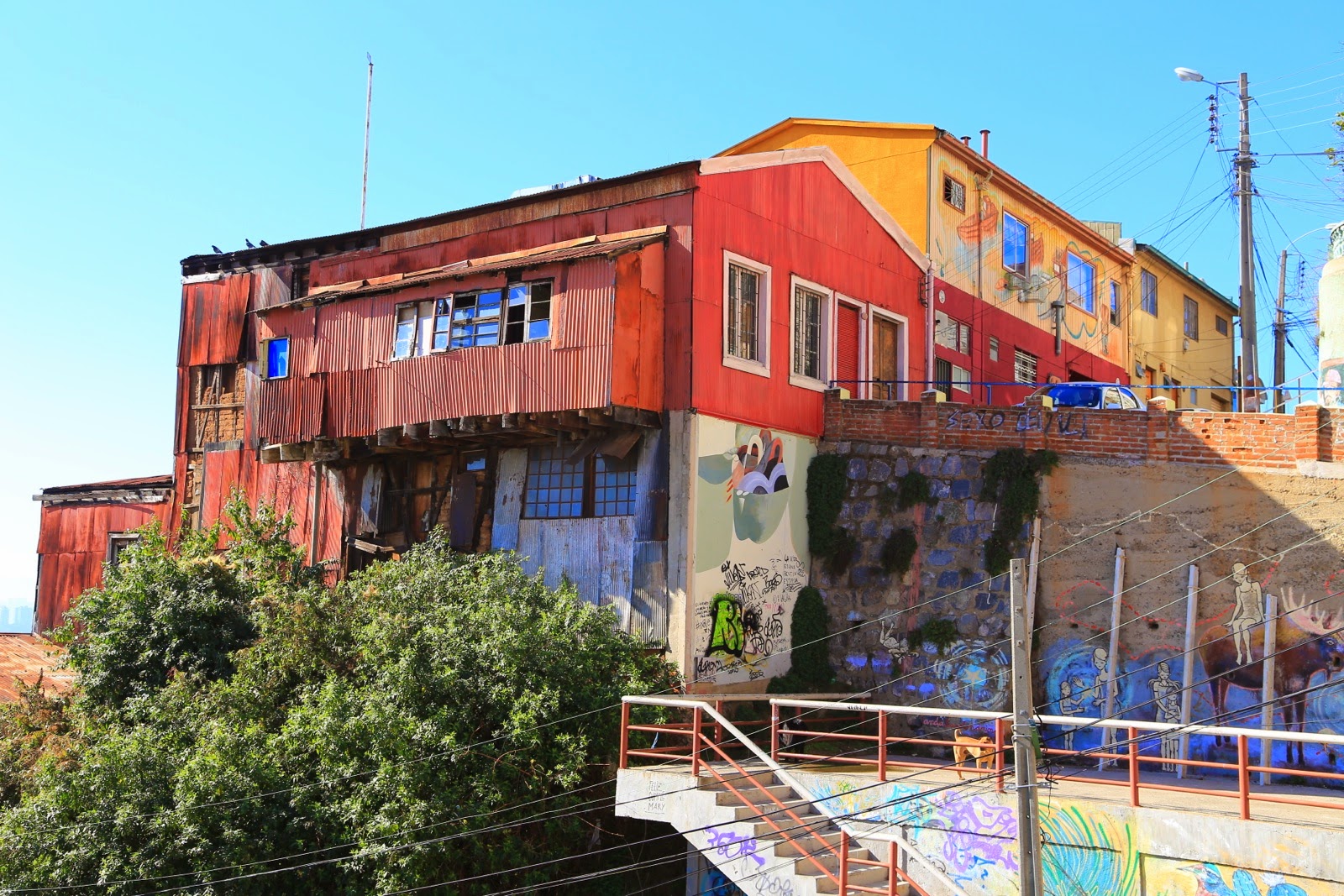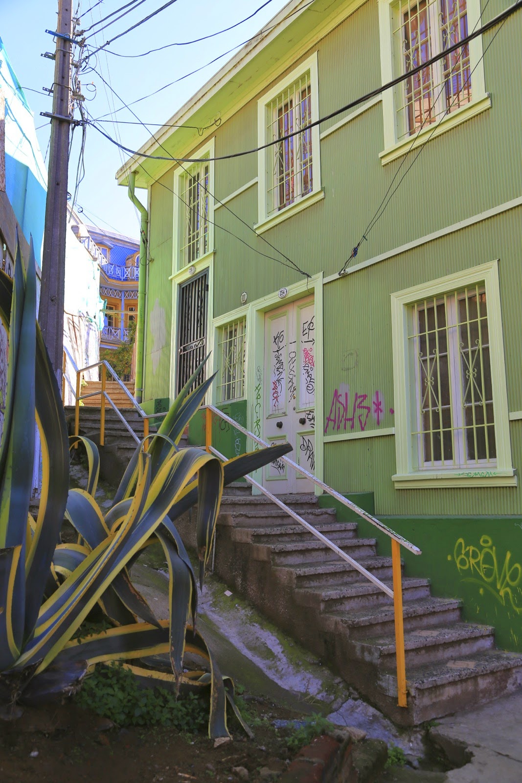 C’est le plus vieux quartier de Valpo et ça se voit ! Certains buildings datant de l’époque coloniale sont totalement abandonnés, d’autres n’ont plus que leurs 4 murs aux couleurs fatiguées, laissant un support de choix pour les aficionados du street art très répandu dans toute la ville.