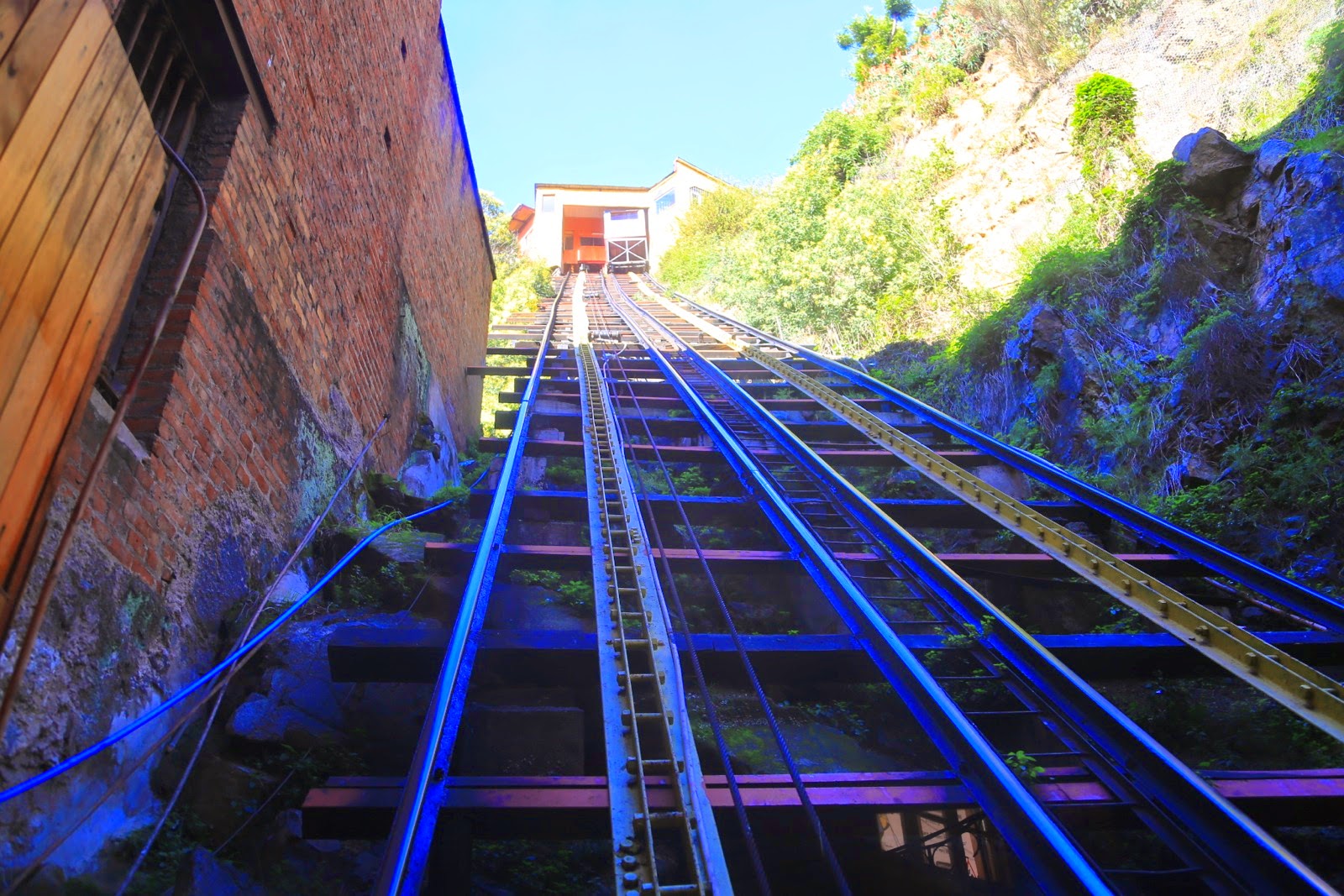 Pour y arriver, on utilise l’Ascensor Concepción qui date de 1883 et n’a pas dû subir beaucoup d’amélioration depuis, si ce n’est qu’il fonctionne à l’électricité et plus à la vapeur !! La cabine en bois fait penser à un vieux sauna et on vit un grand moment lorsque le tout commence à s’ébranler pour nous emmener quelques dizaines de mètres plus haut !