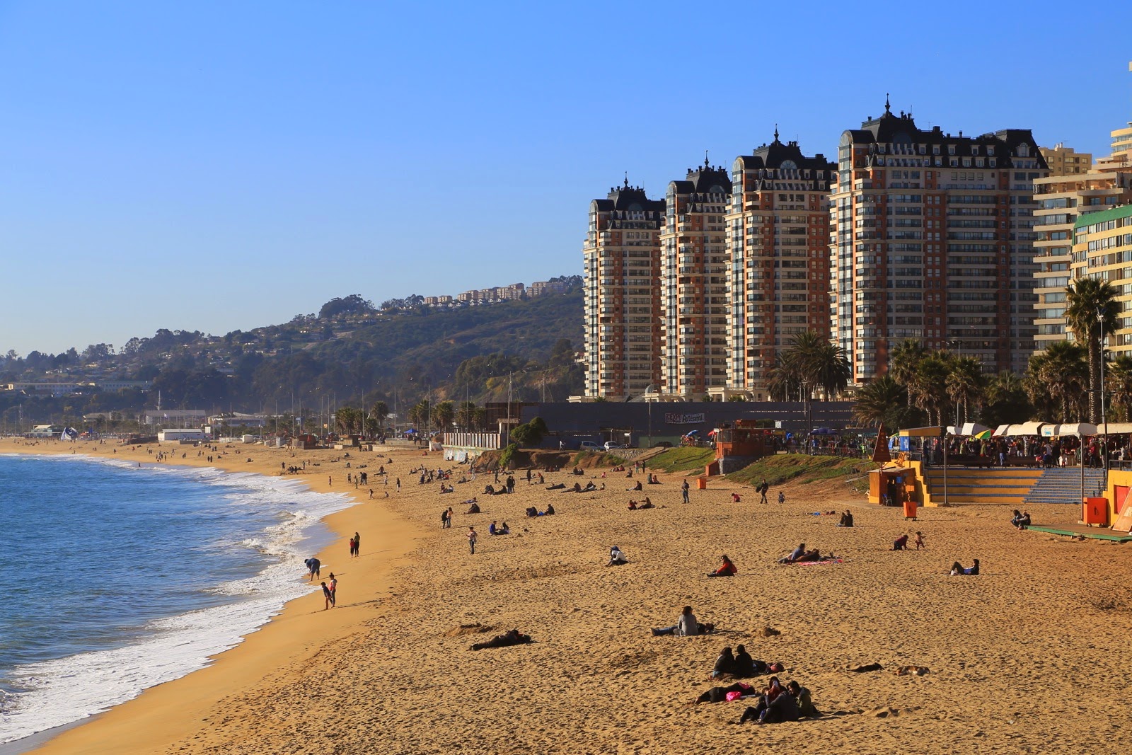Là, on quitte totalement l’atmosphère tellement spéciale de Valpo, on n’a d’ailleurs pas l’impression d’être au Chili mais plutôt sur la riviera italienne ou la Côte d’Azur. Les grands immeubles cossus ont remplacé les frêles bicoques colorées, les chaînes d’hôtellerie de luxe ont pignon sur rue et les 4×4 premium allemands s’impatientent dans les bouchons.