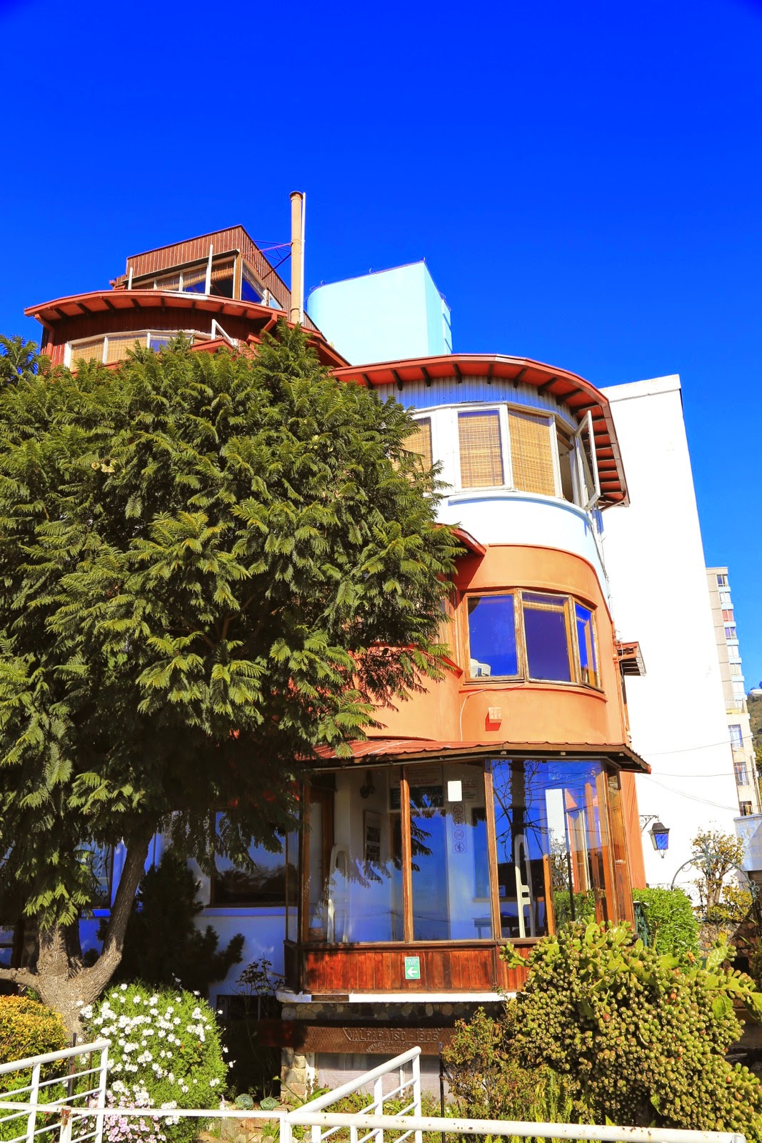 C’est également sur cette colline qu’on visite La Sebastiana, l’une des demeures du poète Pablo Neruda. La maison sur 5 étages est tout à fait surprenante, à la fois très exiguë où mon mètre 90 a parfois du mal à se faufiler dans les couloirs et les escaliers mais avec un sentiment d’espace lorsqu’on découvre les larges fenêtres donnant sur la baie. La déco est tout à fait particulière et étudiée avec grand soin mais une fois de plus, les photos sont prohibées ; au prix de l’entrée, ce n’est pas très “sympa“ !