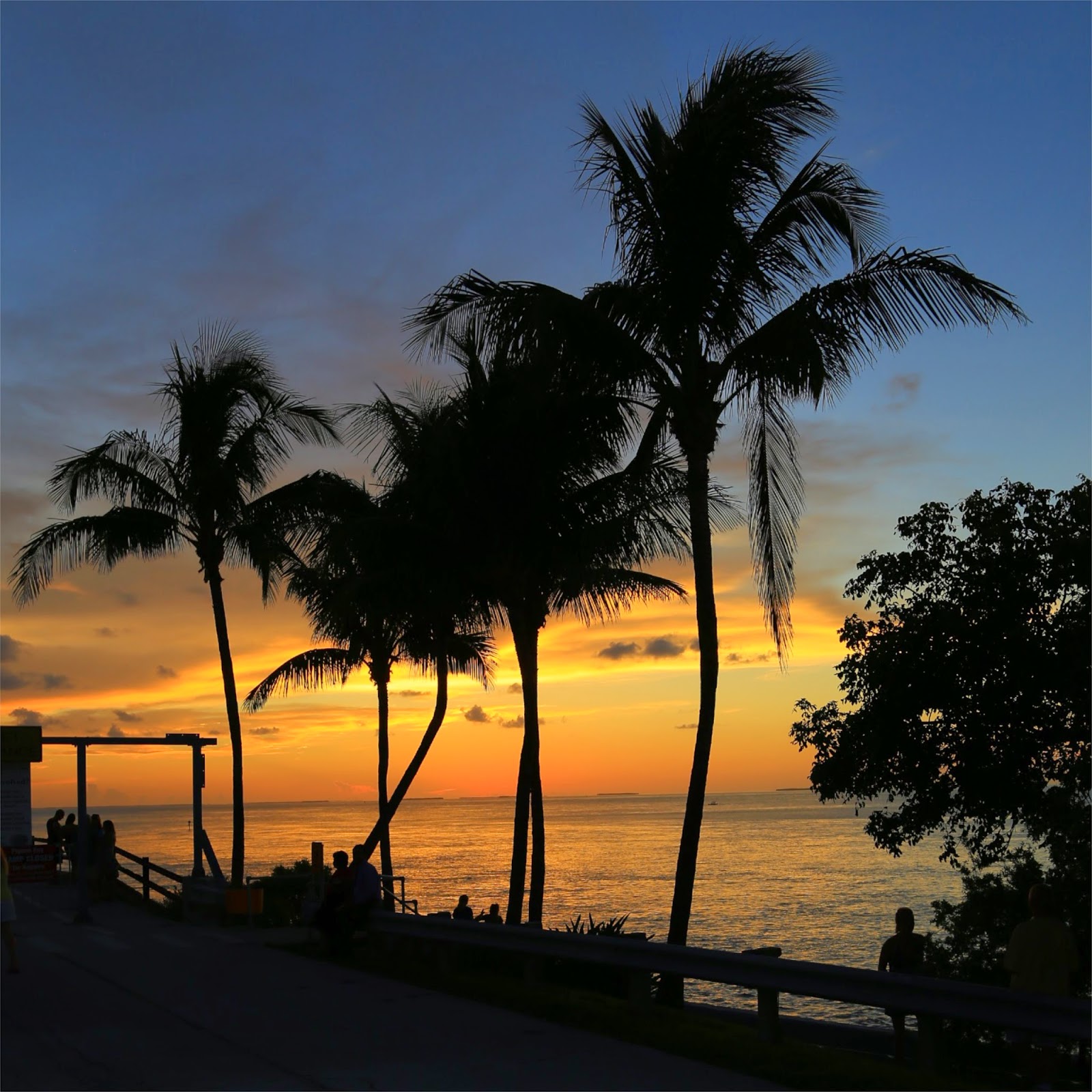 Sur la route du retour, on aperçoit dans le rétroviseur le soleil qui plonge vers la mer et on se hâte de trouver un endroit pour profiter du spectacle. On s’arrête finalement sur le Seven-Mile Bridge, un ancien pont ferroviaire datant de 1908 reconverti ensuite pour les autos et utilisé jusqu’en 1982 avant d’être fermé. Un petit tronçon reste ouvert aux piétons qui viennent y pêcher ou comme nous, admirer le coucher de soleil.