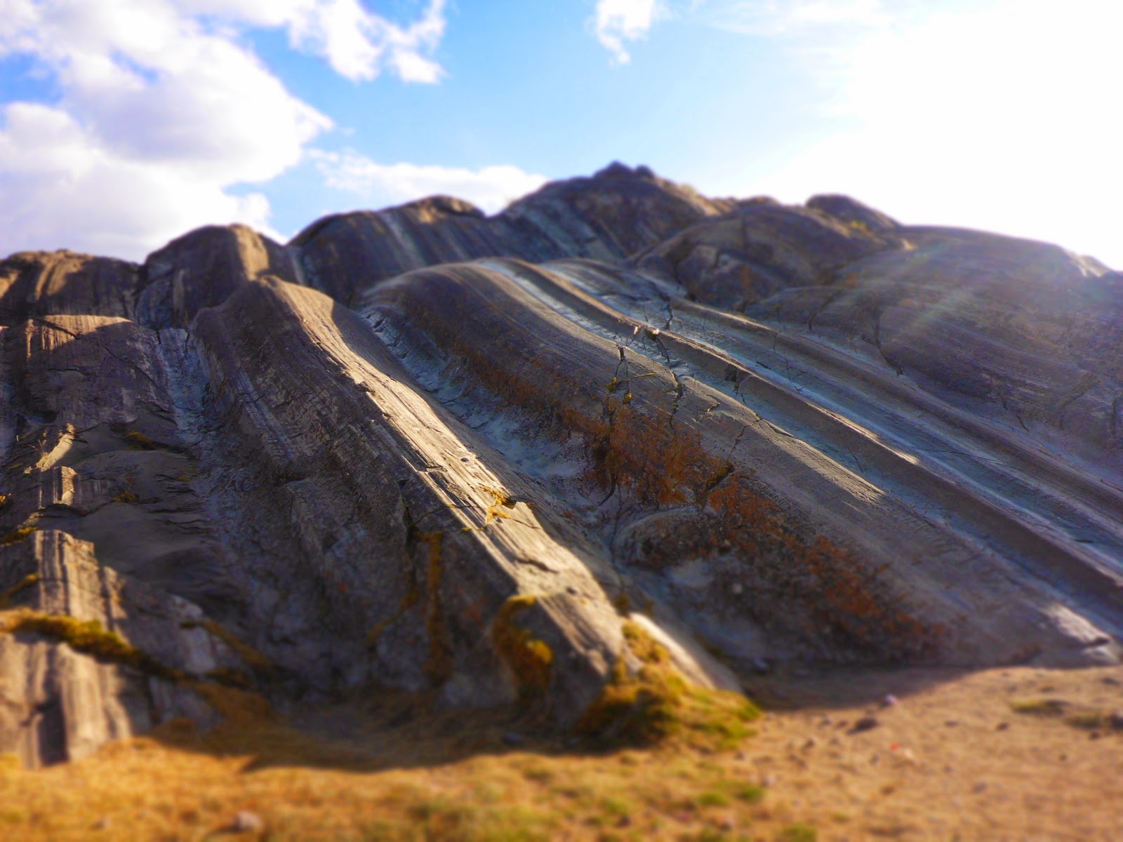 La topographie de la ville de Cuzco représente un puma dont Sacsayhuamán représente la tête et les 22 murs en zigzag symbolisent les dents… tout un symbole !! Il existait 3 tours au sommet dont une de 22 m de diamètre mais il n’en reste que les fondations. De l’autre côté du vaste terrain de manœuvres, on aperçoit une curieuse formation géologique, autrefois sacrée, dont les reliefs curvilignes font penser à un énorme… toboggan !!