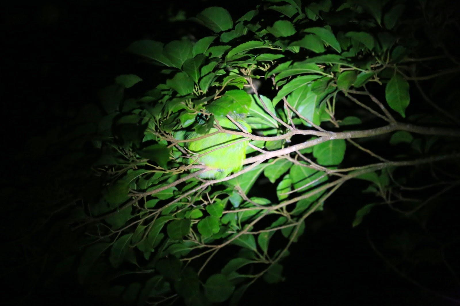 Pendant que le guide part à la recherche d’animaux, nous restons sur place, dans le noir mais pas toujours en silence car la moindre feuille qui tombe sur Helen, génère chez elle un sursaut effrayé accompagné d’un cri strident qui amusera beaucoup notre petit groupe pendant toute la ballade. Le sol étant humide et glissant, on a eu également le droit à quelques belles acrobaties qui se finissent généralement avec le postérieur dans la boue !!